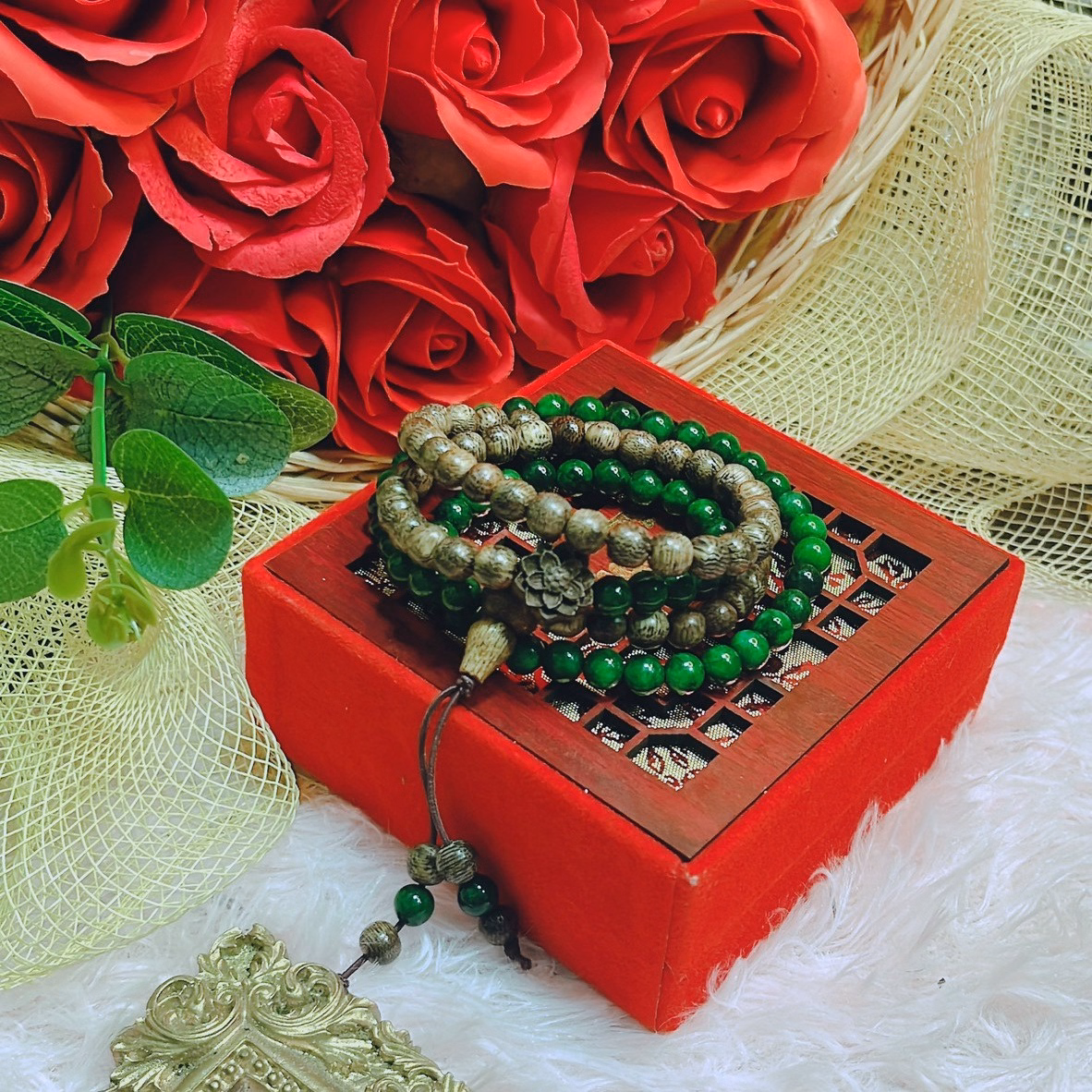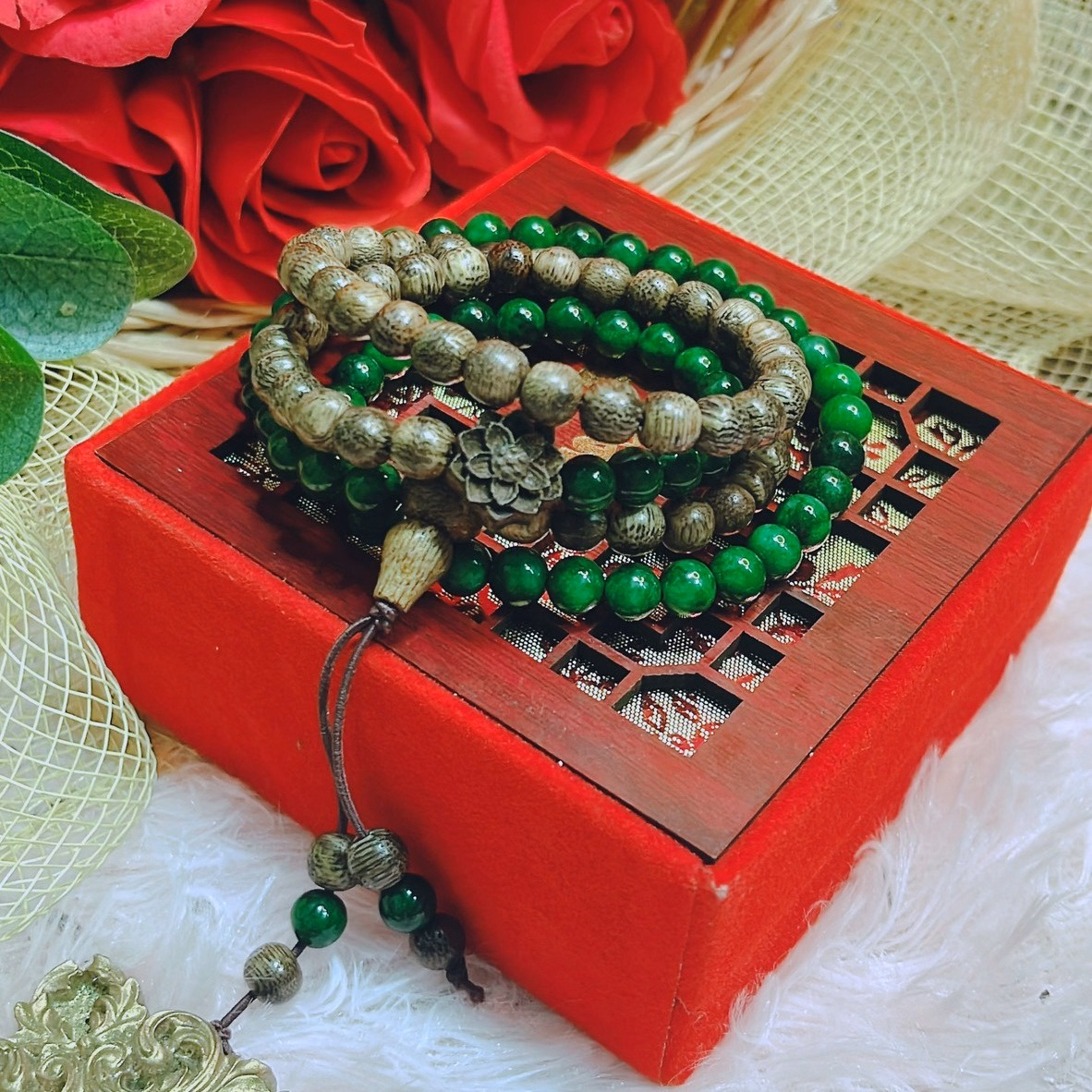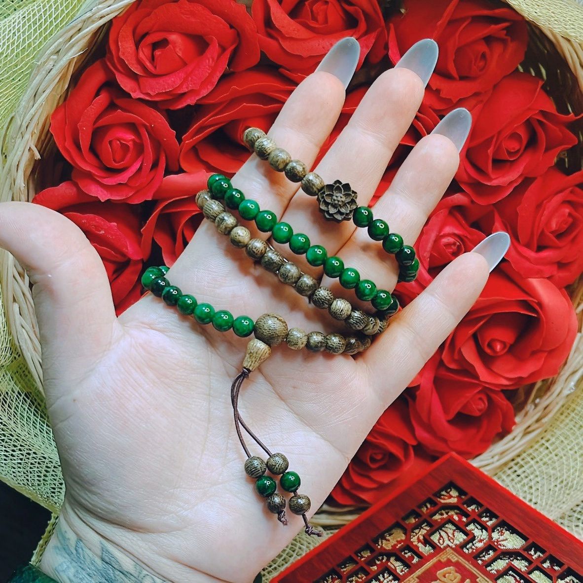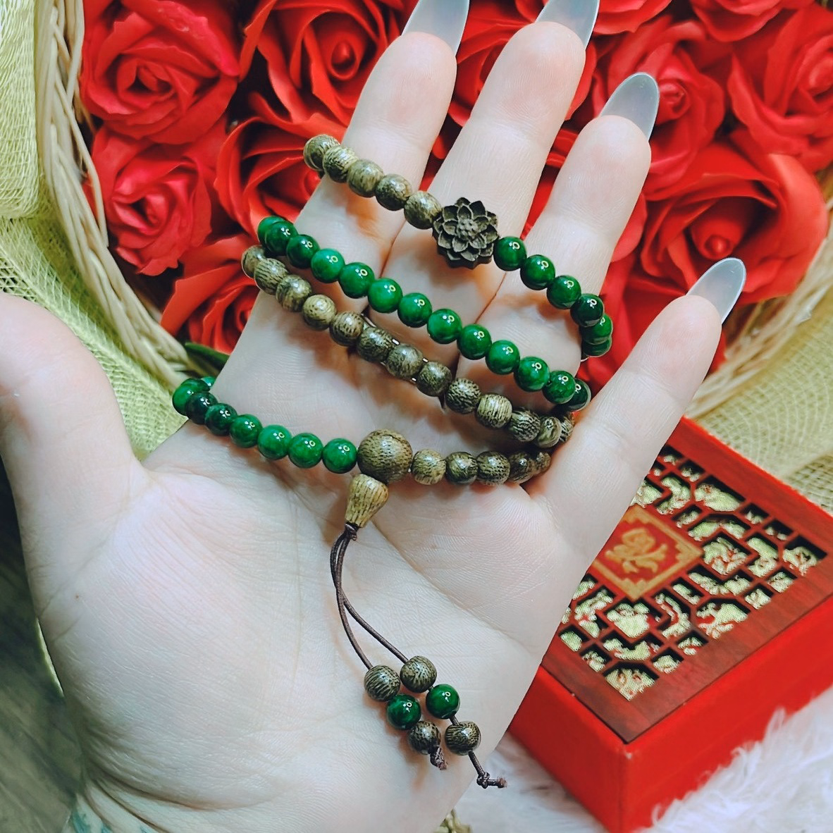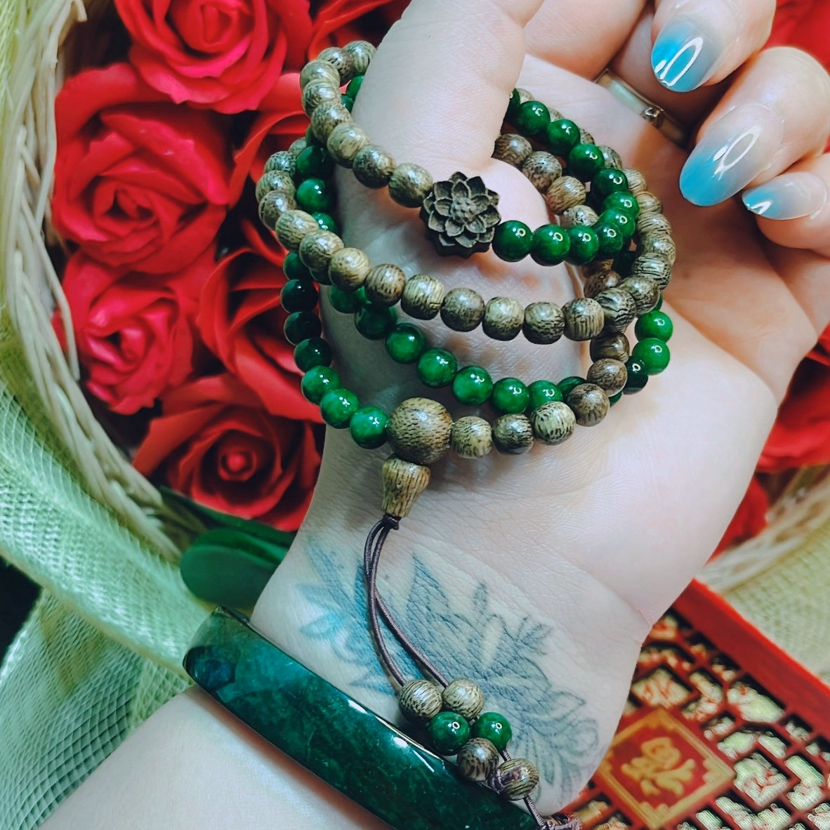 Chuỗi Vòng Tay Trầm Hương Tốc Phối Cẩm Thạch Hình Hoa Sen – Thắng Giang