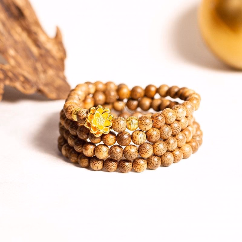 Chuỗi Vòng Tay Trầm Hương Tốc Thiên Nhiên 108 Hạt Phối Sen – Thắng Giang