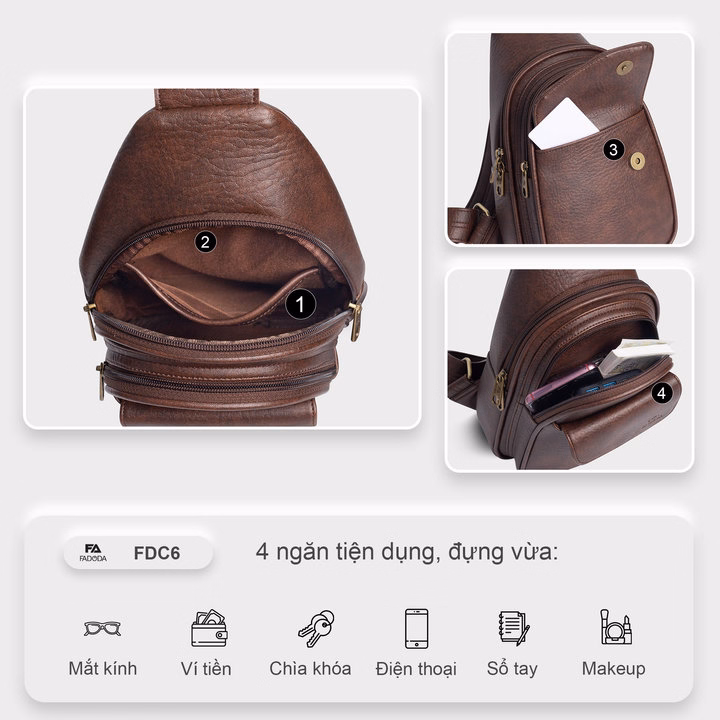 • Số ngăn Túi Fdc6: 4 ngăn ( 3 ngăn lớn, 1 ngăn nhỏ )