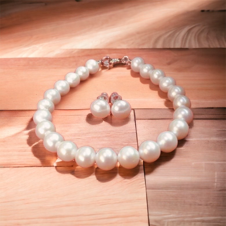 Combo Vòng Tay Bông Tai Ngọc Trai Nuôi Nước Ngọt Thiên Nhiên 8 Ly – Thắng Giang