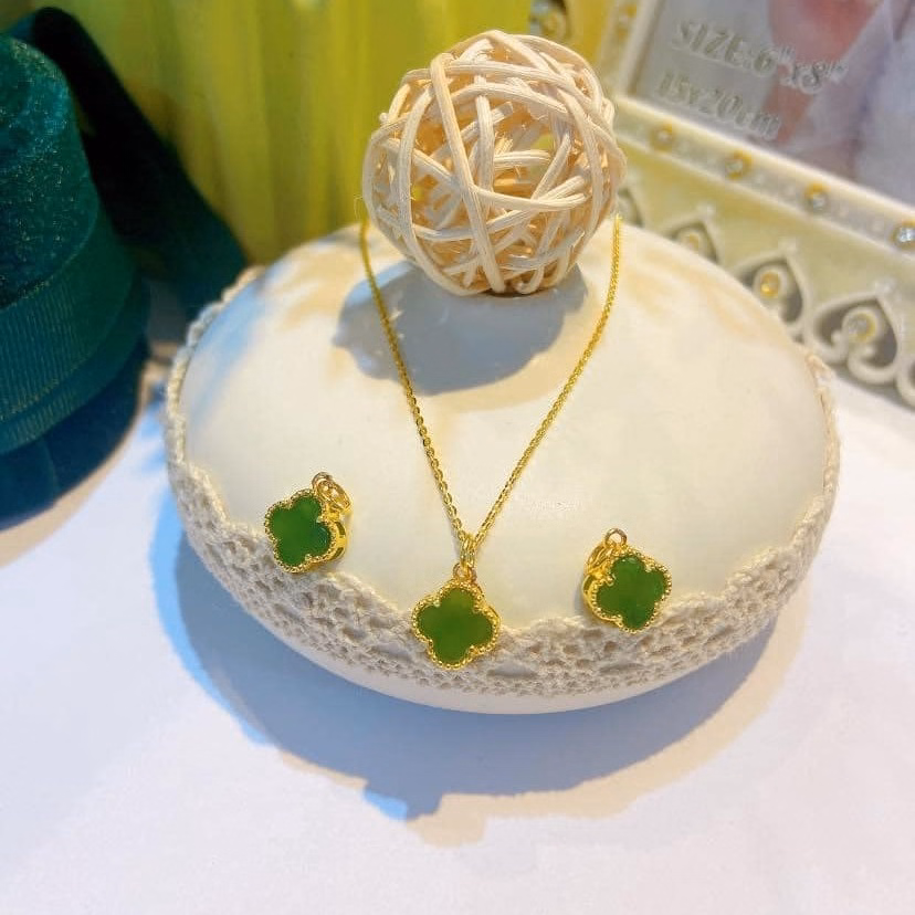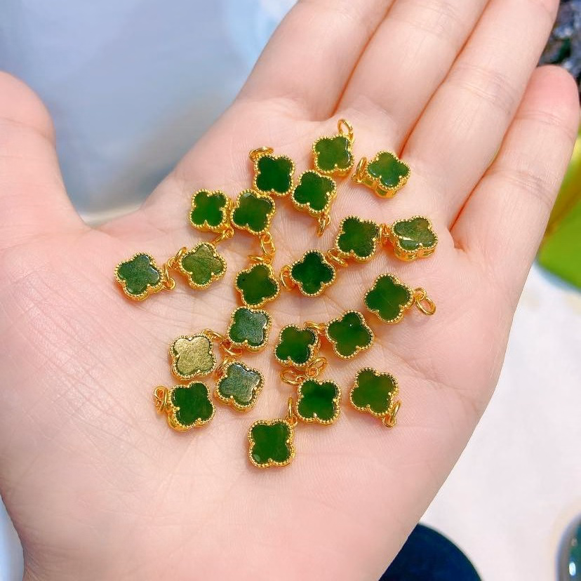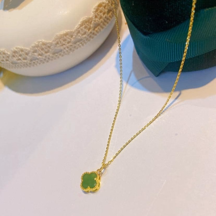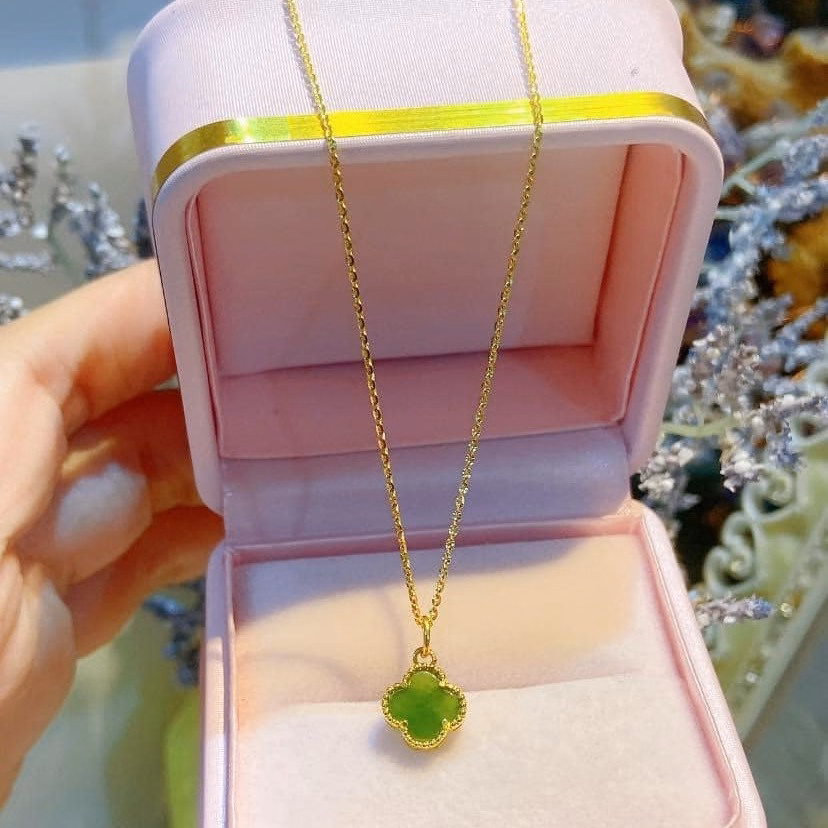 Dây Chuyền Cỏ Bốn Lá Ngọc Bích Vàng Tây 10 Kara Có Thẻ Hóa Đơn – Thắng Giang