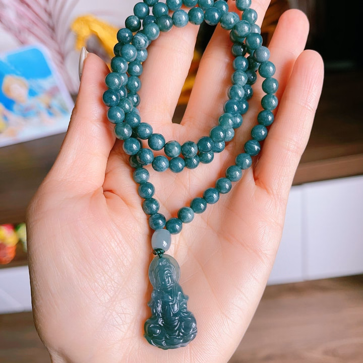 Dây Chuyền Lam Ngọc Mặt Phật Quan Âm Thiên Nhiên – Thắng Giang