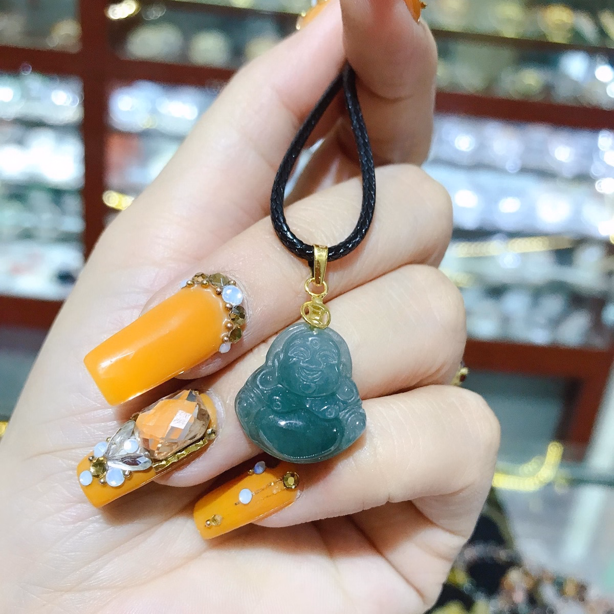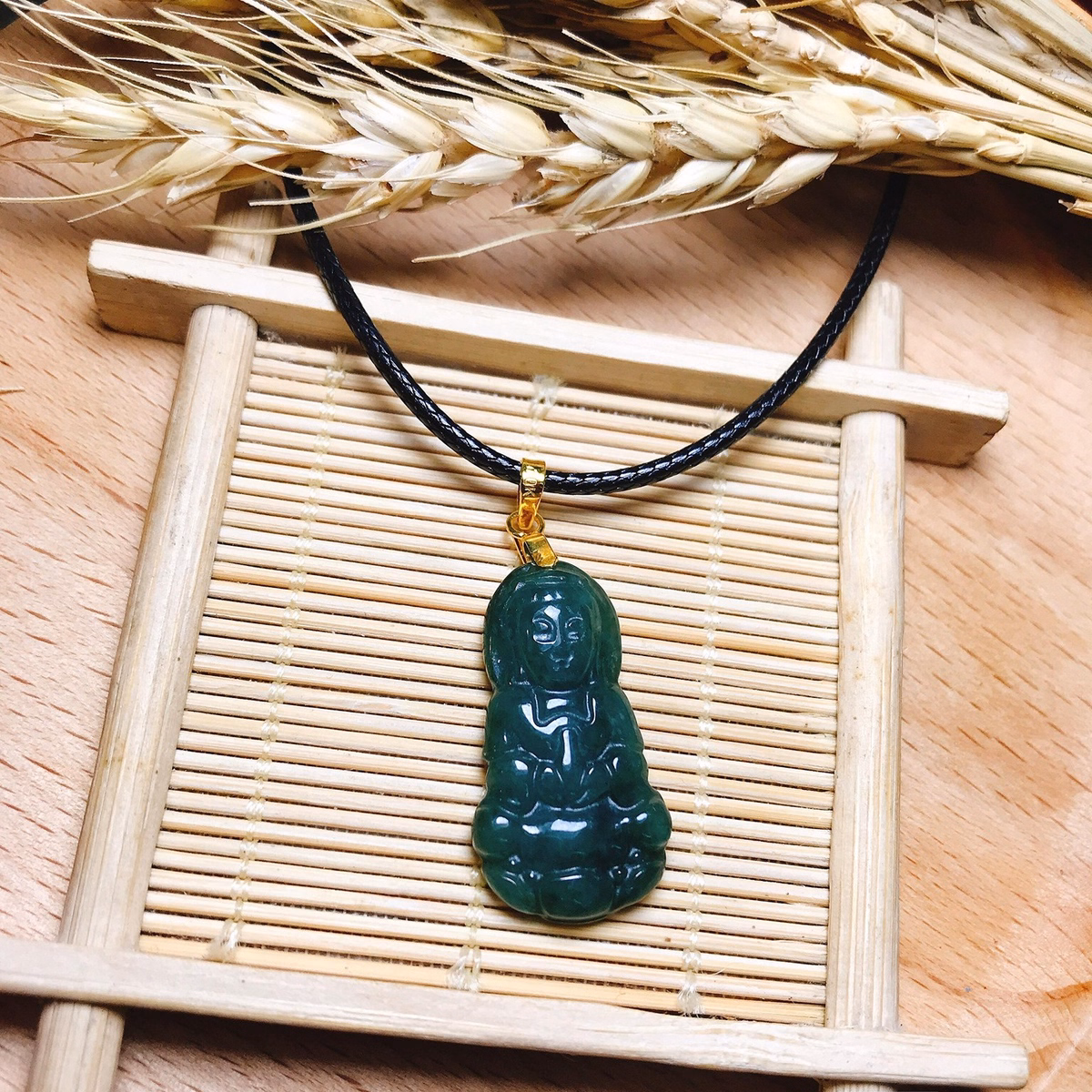 Dây Chuyền Mặt Phật Ngọc Cẩm Thạch Thiên Nhiên Móc Vàng Tây 10 Kara – Thắng Giang