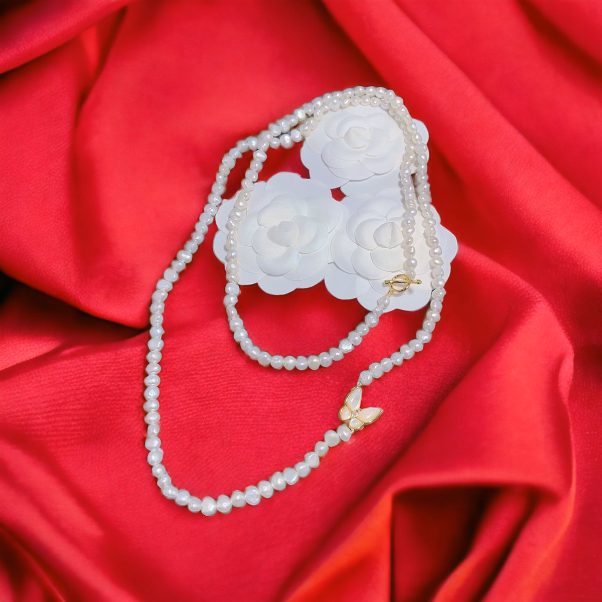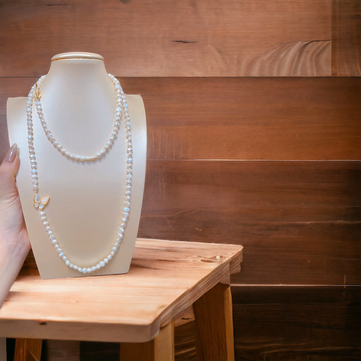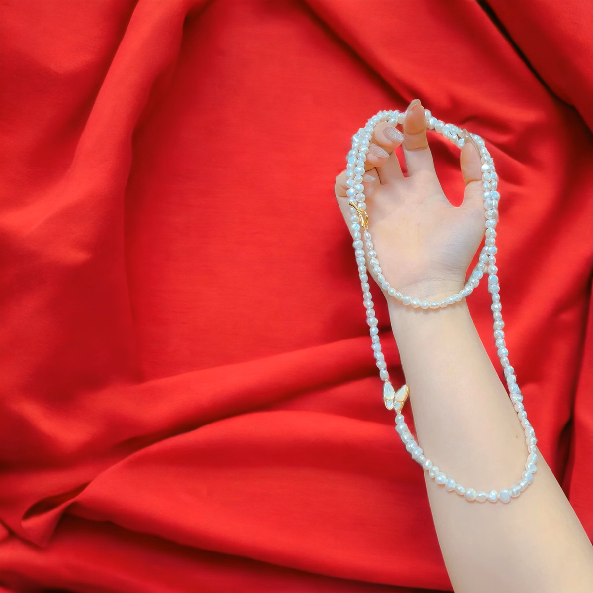 Dây Chuyền Ngọc Trai Nuôi Nước Ngọt Thiên Nhiên Hai Tầng Khóa Hồ Điệp – Thắng Giang