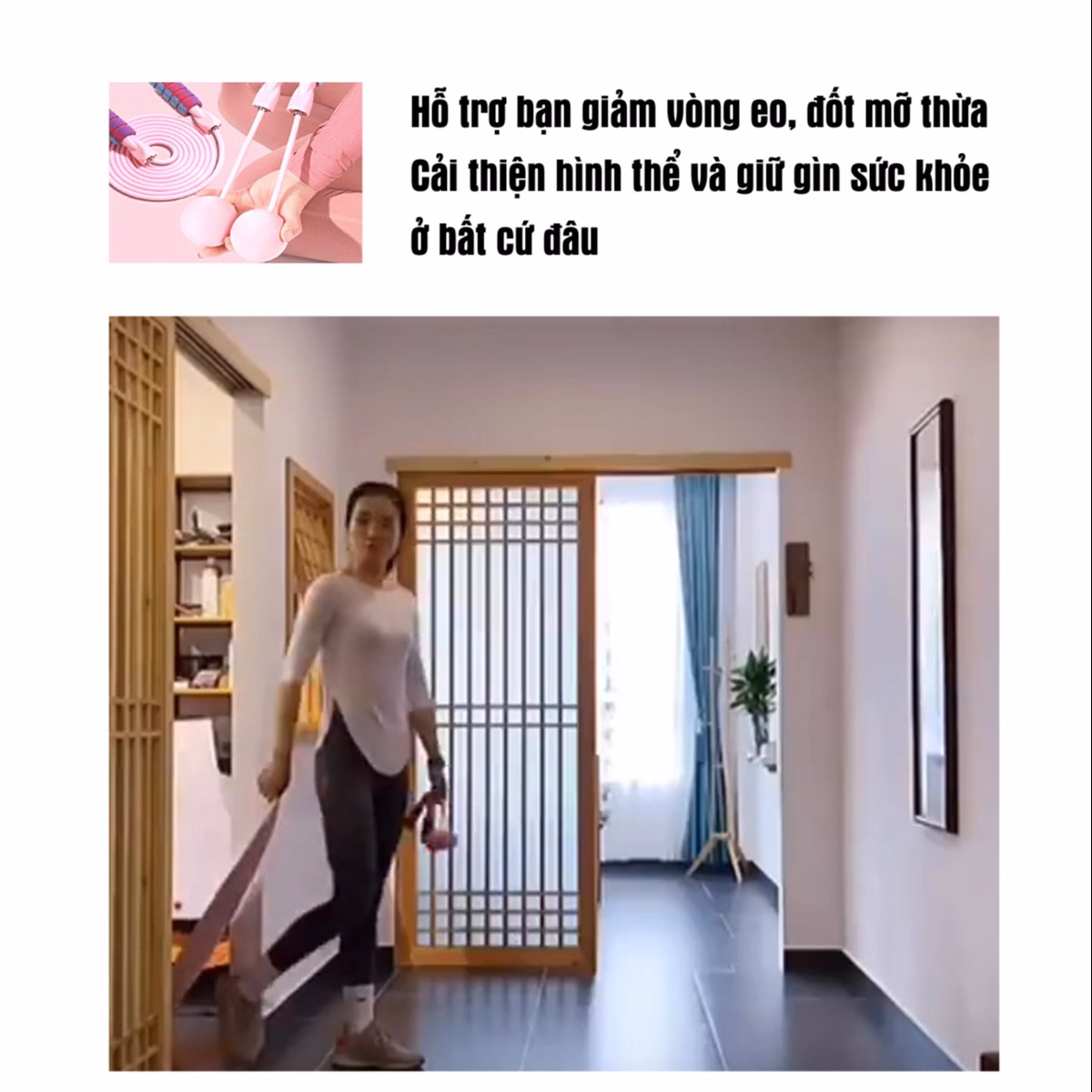 ➣ Hỗ trợ bạn giảm cân, cải thiện hình thể và giữ gìn sức khỏe ở bất cứ đâu. Thiết kế nhỏ gọn và trọng lượng nhẹ nên dễ dàng đựng vừa trong túi tập thể dục.