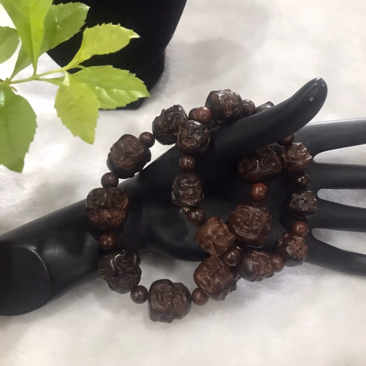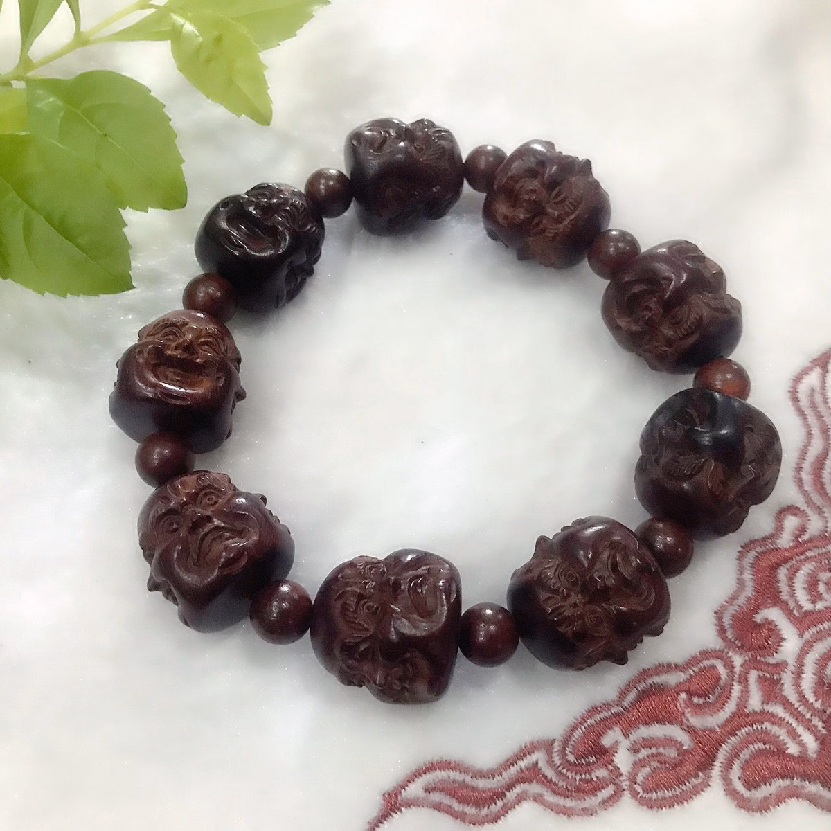 Sản phẩm: Vòng tay 18 vị La Hán (mỗi hạt chuỗi được khắc hình 2 đầu tượng la hán, tổng cộng 9 hạt là 18 la hán)