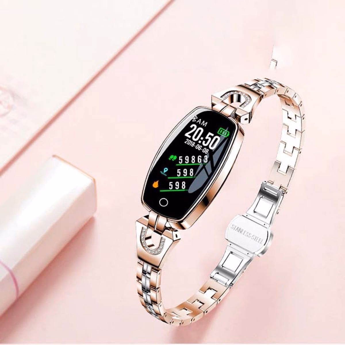Đồng hồ nữ H8 Lemfo thông minh, quý phái đầy quyến rũ và được làm bằng chất liệu vỏ hợp kim kẽm, dây đeo kim loại, kích thước thanh mảnh nhưng vẫn tạo điểm nhấn ấn tượng.