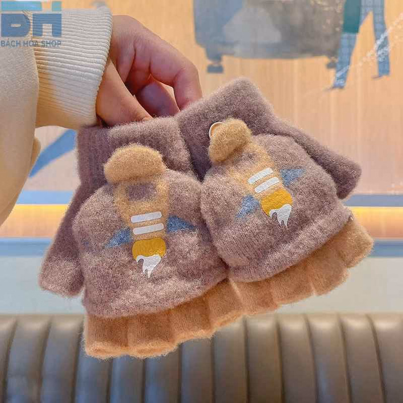 Tên sản phẩm: Gang Tay Len Dệt Kim, Thoáng Khí, Kháng Khuẩn, Họa Tiết Hoạt Hình Dễ Thương – Bh Kids