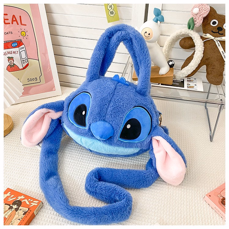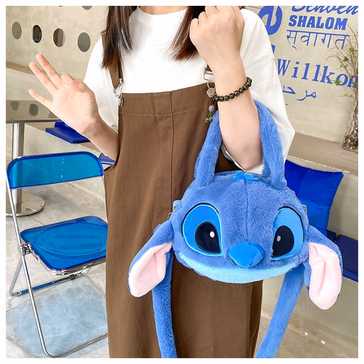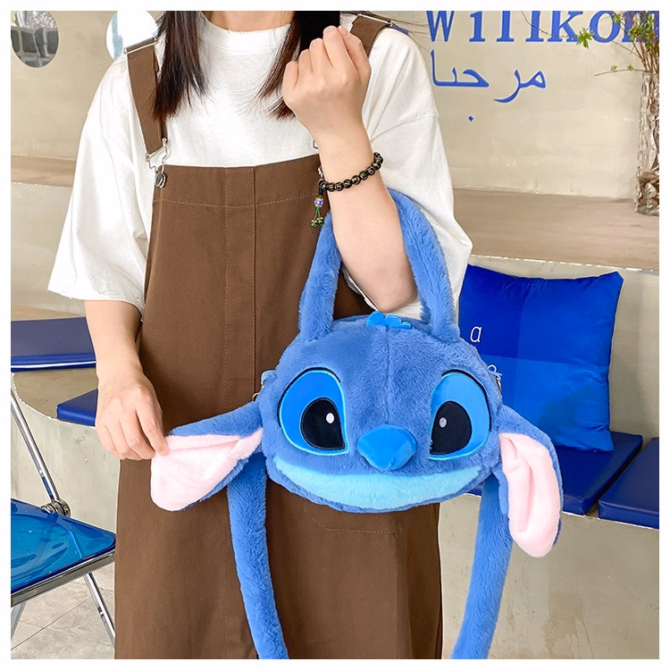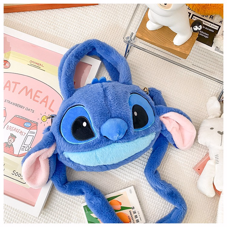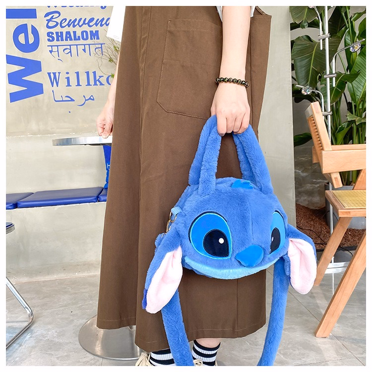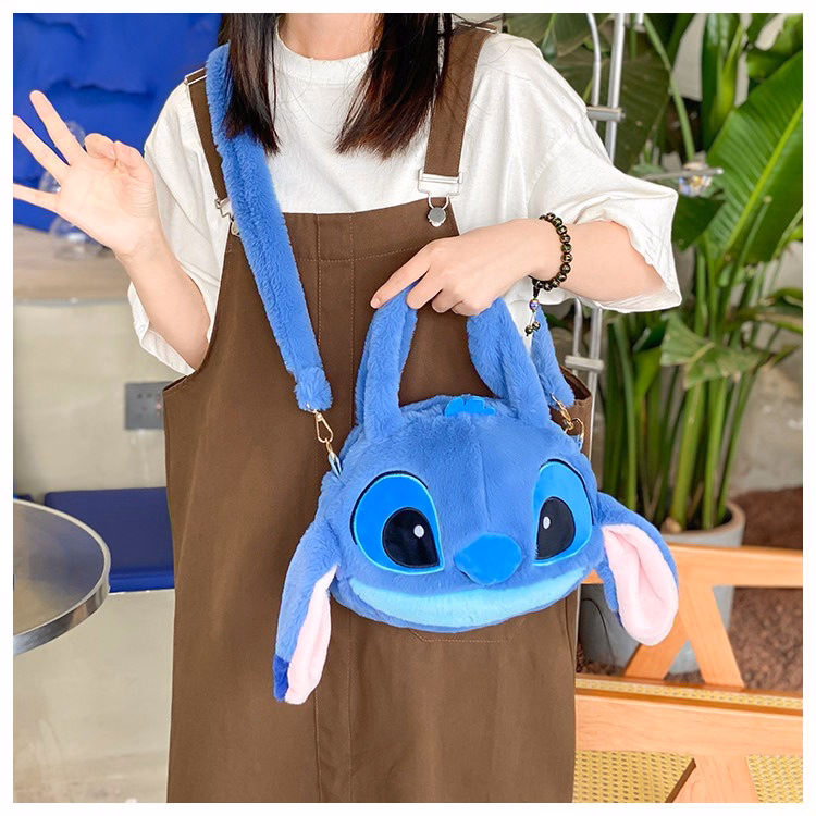 Mô tả sản phẩm [Hàng siêu cấp] Túi đeo chéo gấu Stitch xanh nhồi bông cỡ lớn bản Dây Nhung Lông phong cách hoạt hình Disney dễ thương