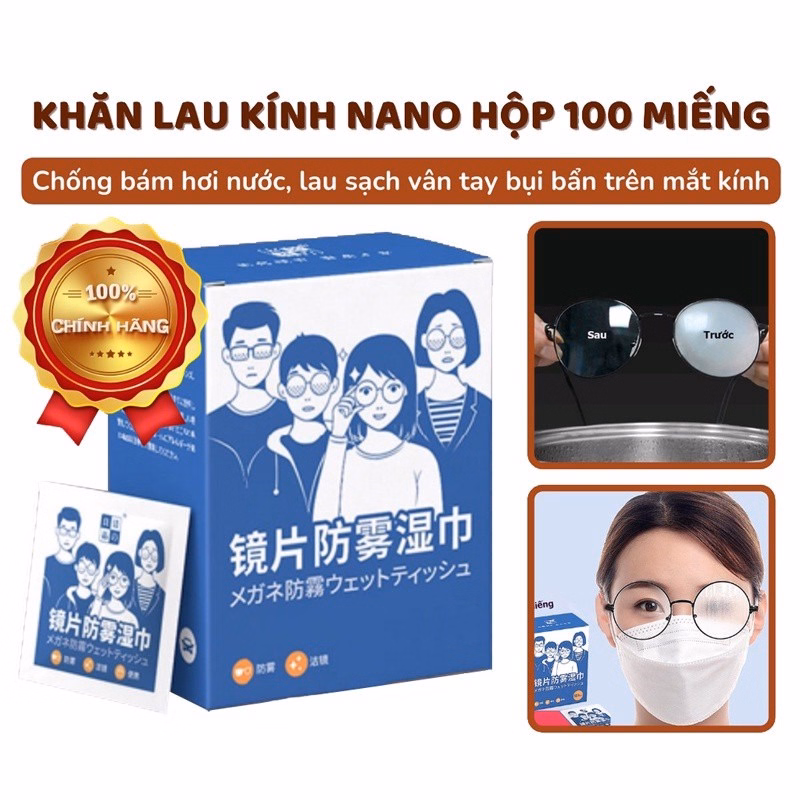 Hộp 100 miếng khăn Lau mắt Kính Nano Chống Mờ Sương Công Nghệ Nhật Bản