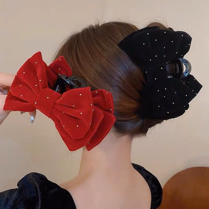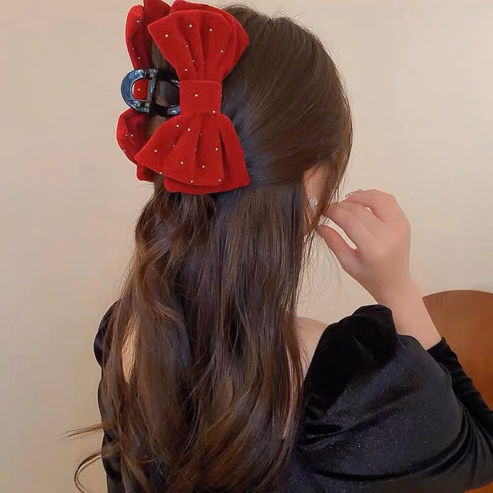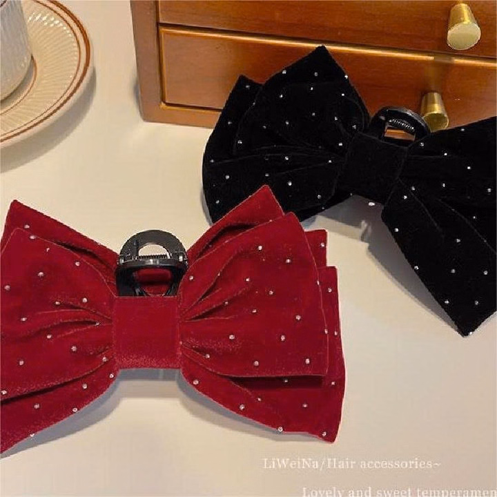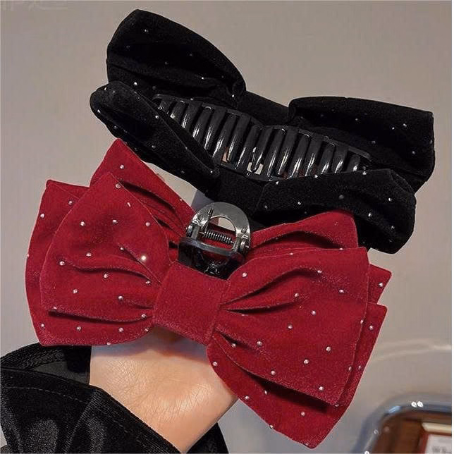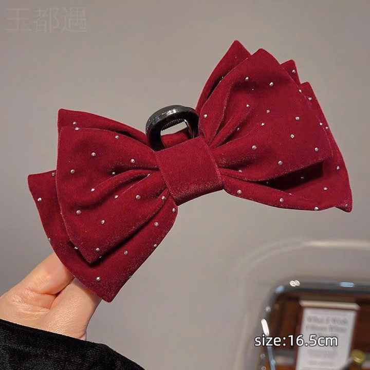 Kẹp Tóc Càng Cua Cỡ Lớn, Kẹp Nơ Nhung Size Đại Đính Đá Diện Tết-Phụ Kiện Tóc Công Chúa Cao Cấp