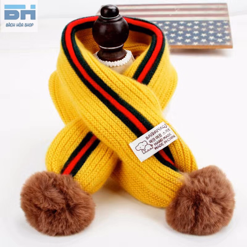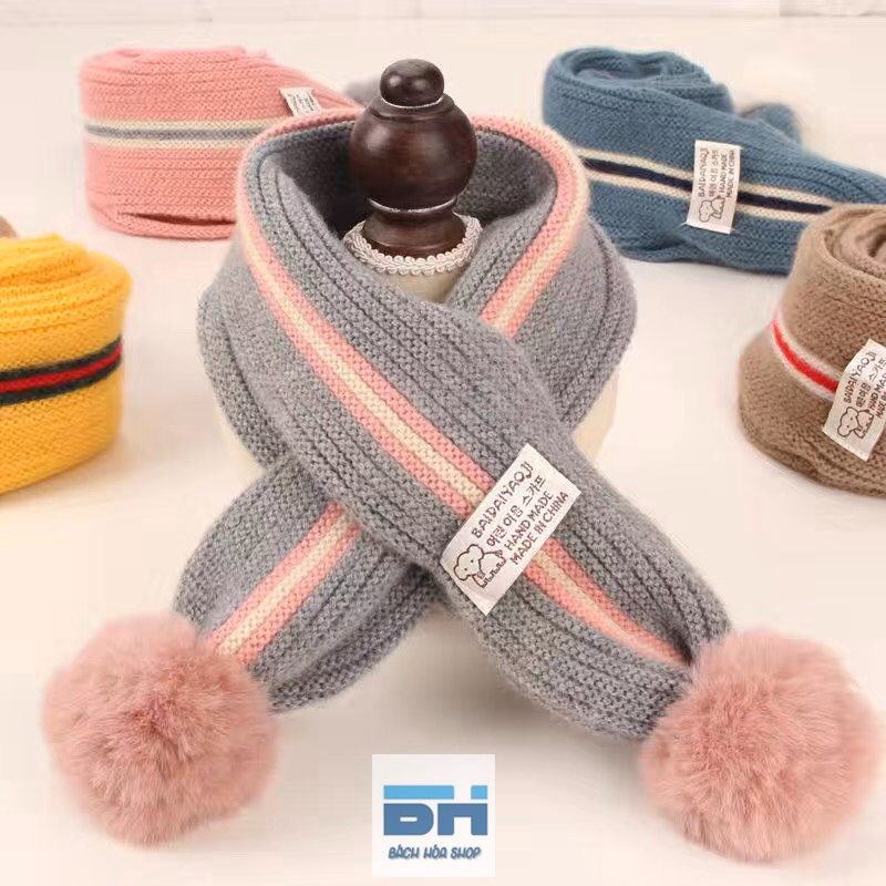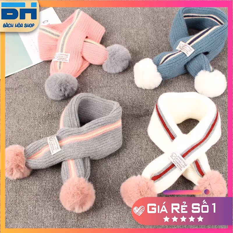 Khăn Len Choàng Cổ Phối Bóng Lông Mềm Xinh Xắn Cho Bé Từ 1-12 Tuổi – Bh Kids