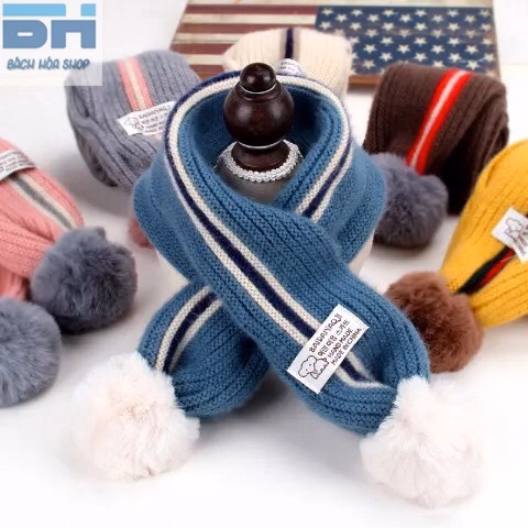 Tên sản phẩm: Khăn Len Choàng Cổ Phối Bóng Lông Mềm Xinh Xắn Cho Bé Từ 1-12 Tuổi – Bh Kids