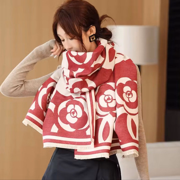Khăn Quàng Cổ Khăn Choàng Cổ Hoa Trà Siêu Vip Sang Trọng Dành Cho Nữ