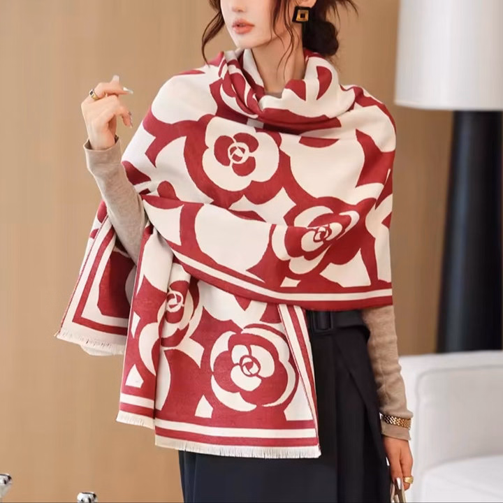 Khăn Quàng Cổ Khăn Choàng Cổ Hoa Trà Siêu Vip Sang Trọng Dành Cho Nữ