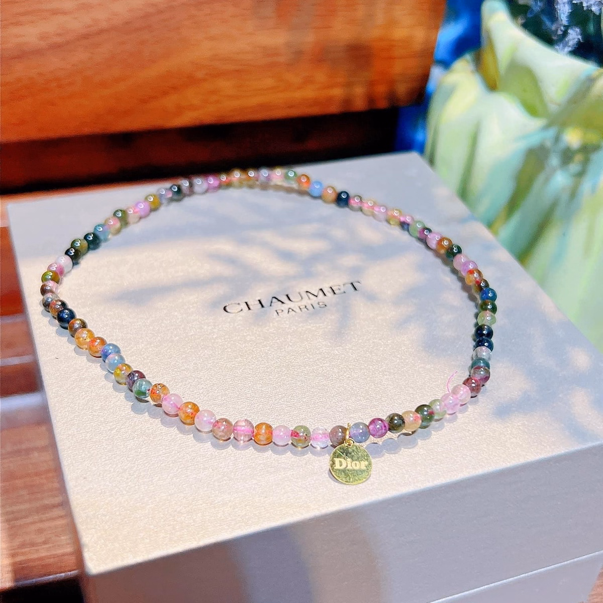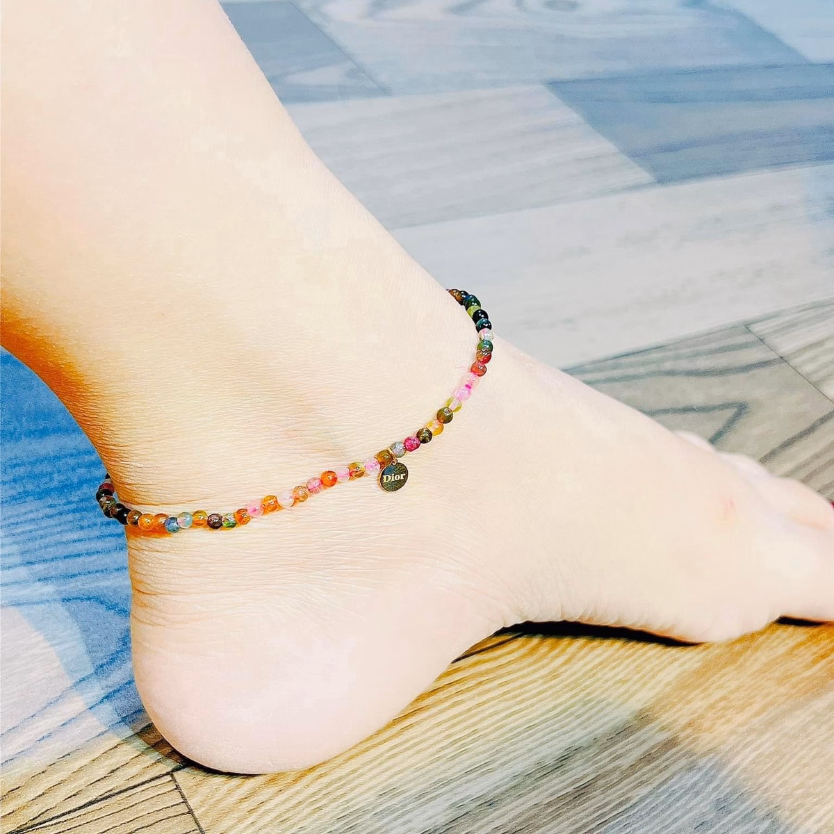 Lắc Chân Đá Tourmaline Thiên Nhiên Phối Charm Vàng Tây 10 Kara Có Thẻ Hóa Đơn – Thắng Giang