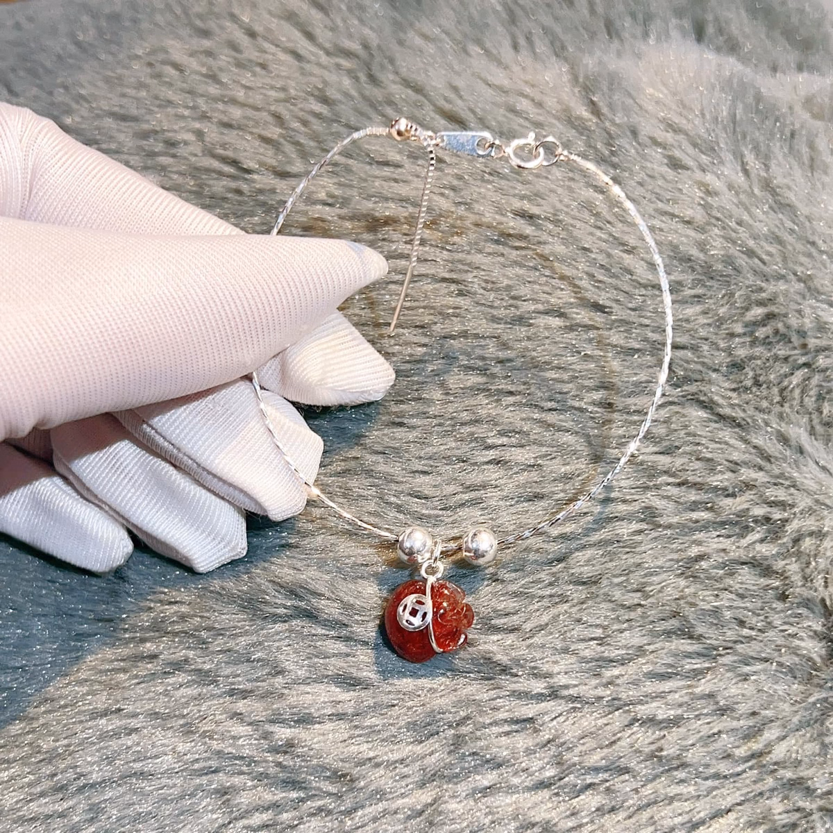 Lắc Tay Bạc Ta Chuẩn Phối Túi Tiền Thạch Anh Tóc Đỏ Thiên Nhiên – Thắng Giang