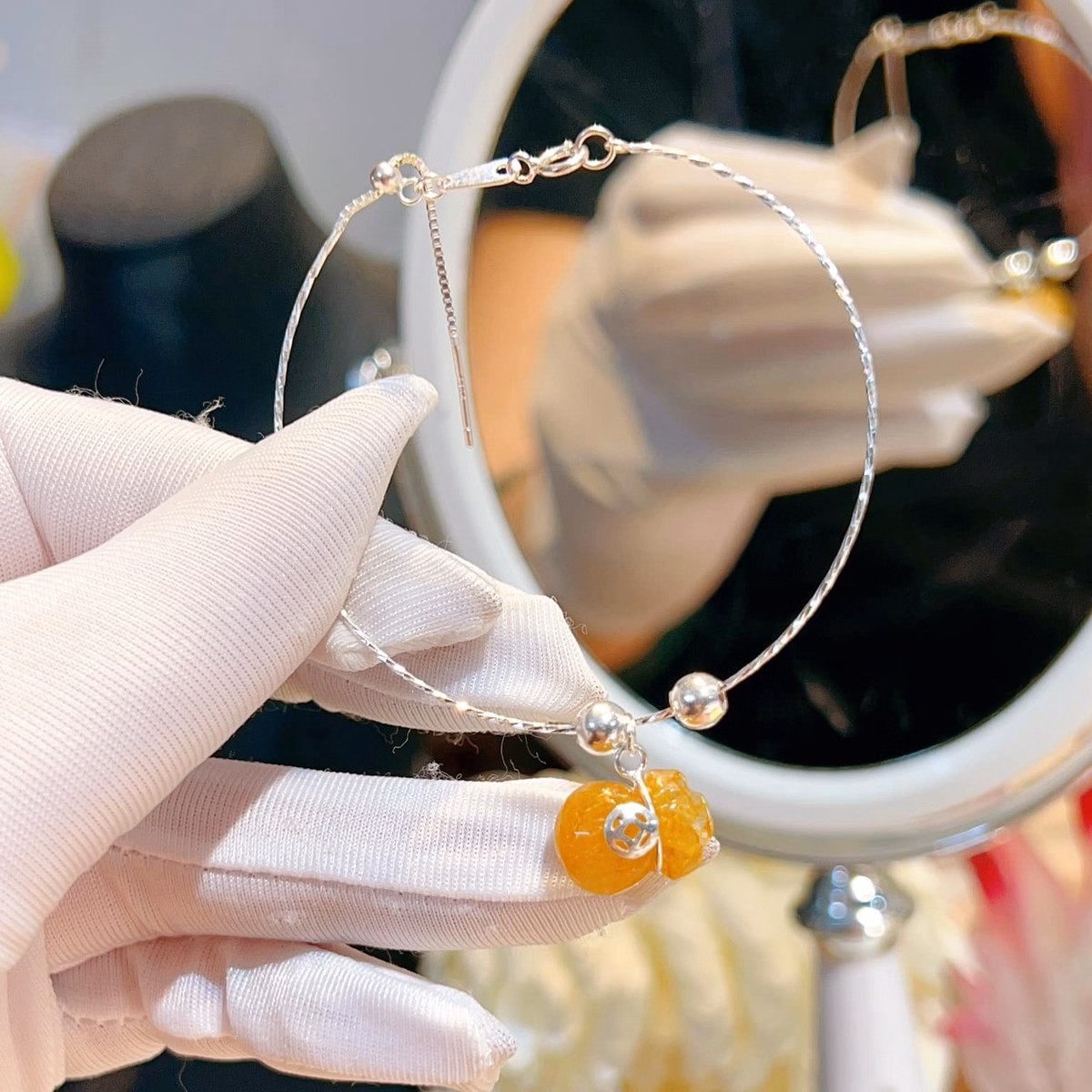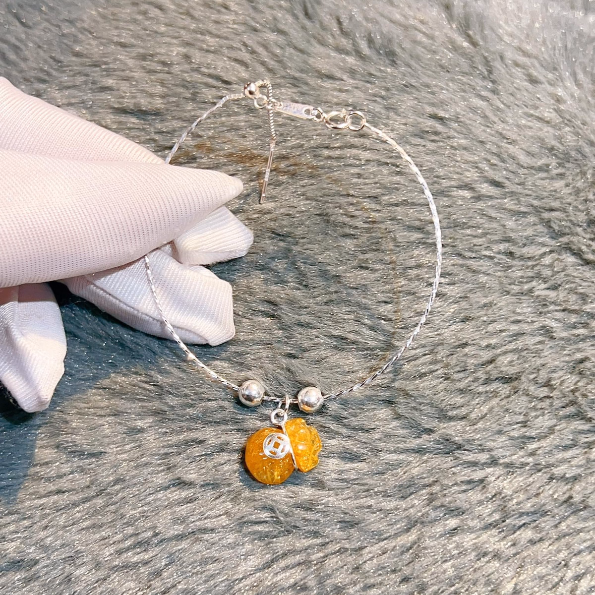 Lắc Tay Bạc Ta Chuẩn Phối Túi Tiền Thạch Anh Tóc Vàng Thiên Nhiên – Thắng Giang