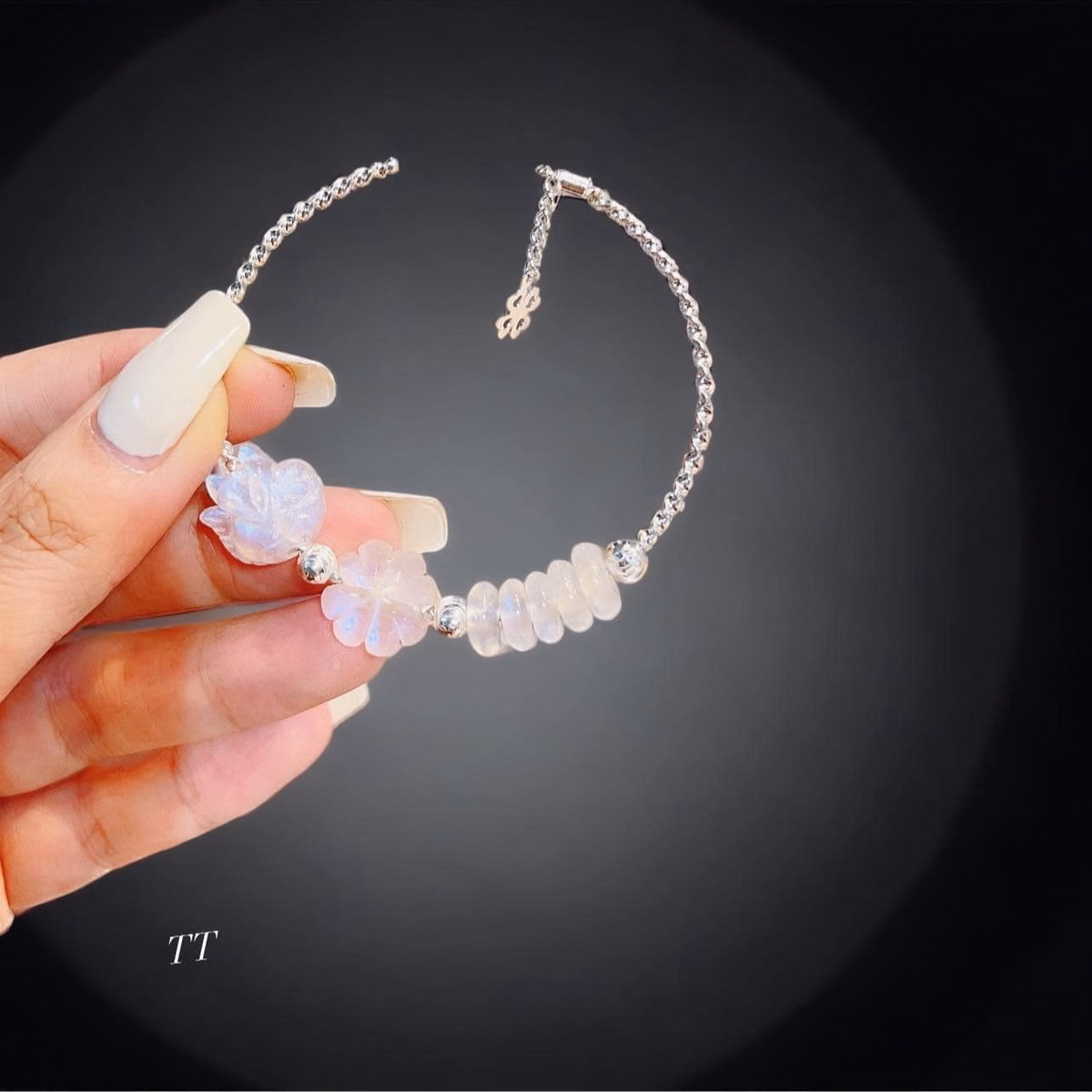 Lắc Tay Bạc Ta Gắn Cỏ Bốn Lá Hồ Ly Ngũ Điếu Đá Moonstone Thiên Nhiên – Thắng Giang