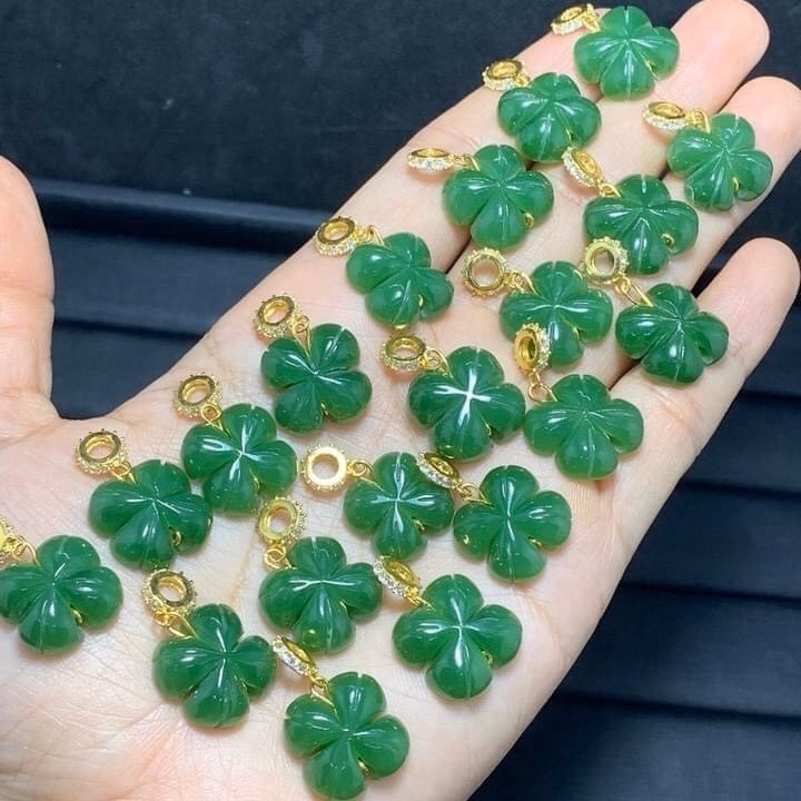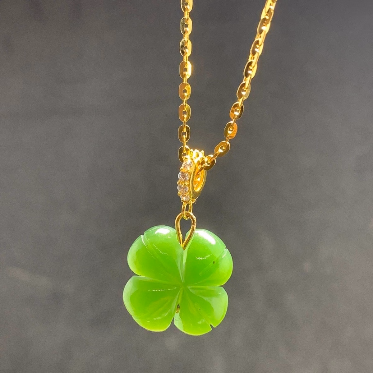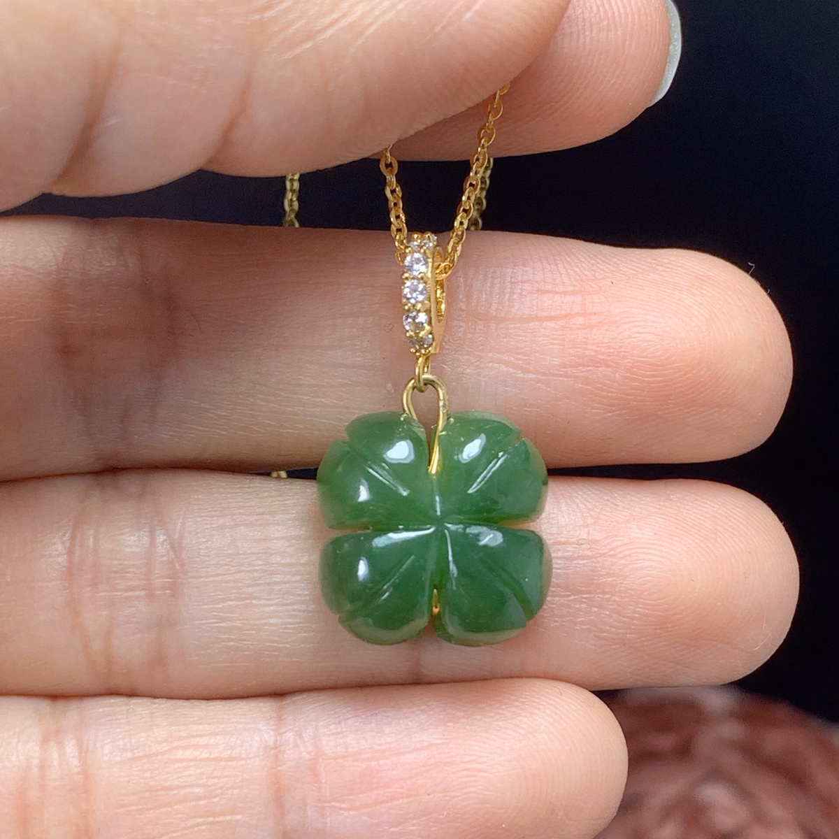 Mặt Dây Chuyền Cỏ Bốn Lá Ngọc Bích Thiên Nhiên Móc Vàng Tây 10 Kara – Thắng Giang