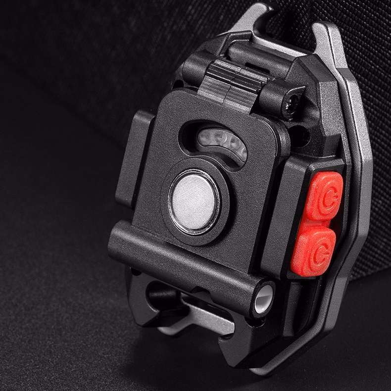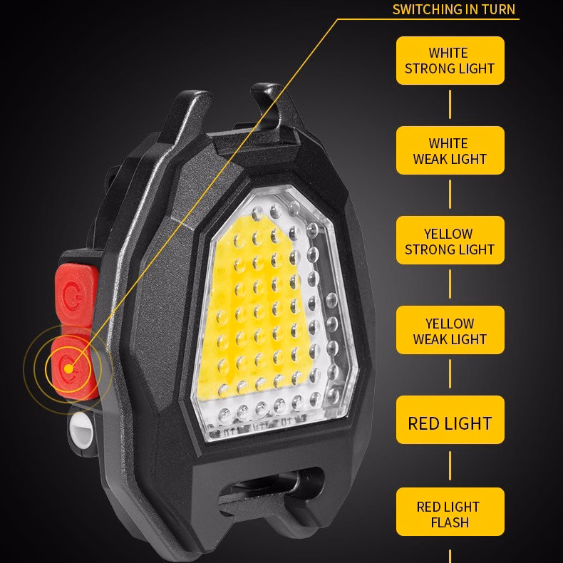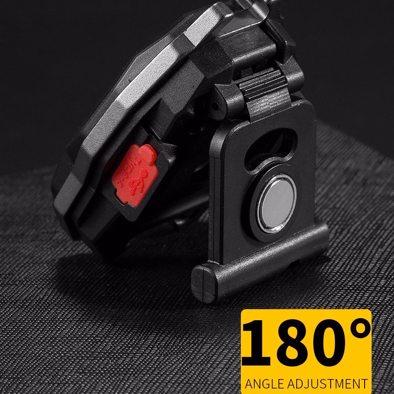 1. Mặt sau của đèn được trang bị một nam châm, có thể hút bất kỳ kim loại nào, và móc gắn vào và vòng lặp có thể được treo ở những nơi nhất định, giúp bạn rảnh tay.