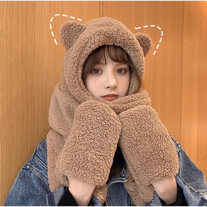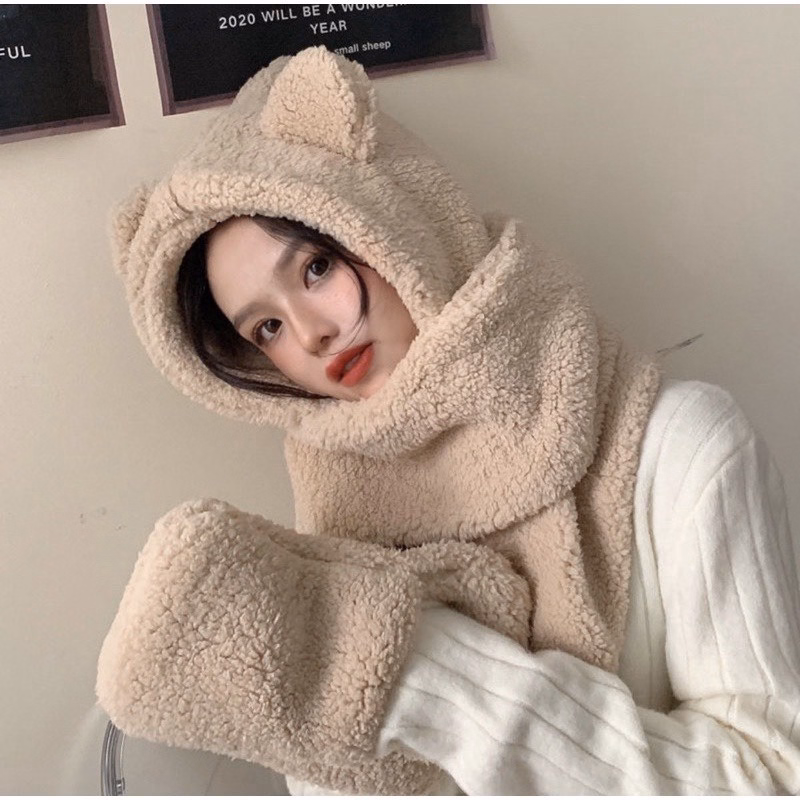 __Mũ Lông Cừu Liền Khăn Và Găng Tay Tai Gấu 3 trong 1 đến hẹn lại lên, hot như covid mà ai cũng quan tâm.