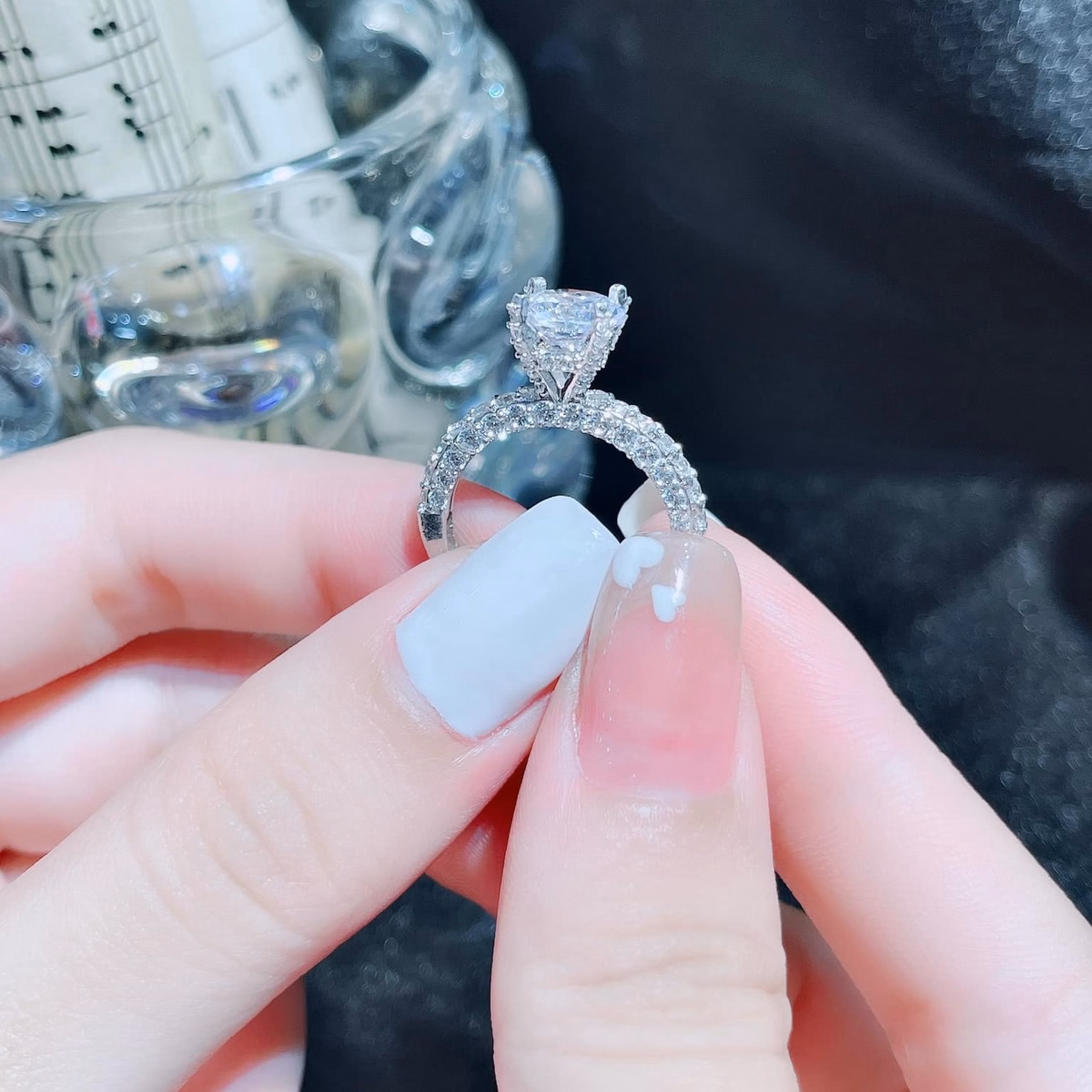 Tên sản phẩm: nhẫn bạc ý đính đá xi bạch kim đá chủ 7 ly – thắng giang