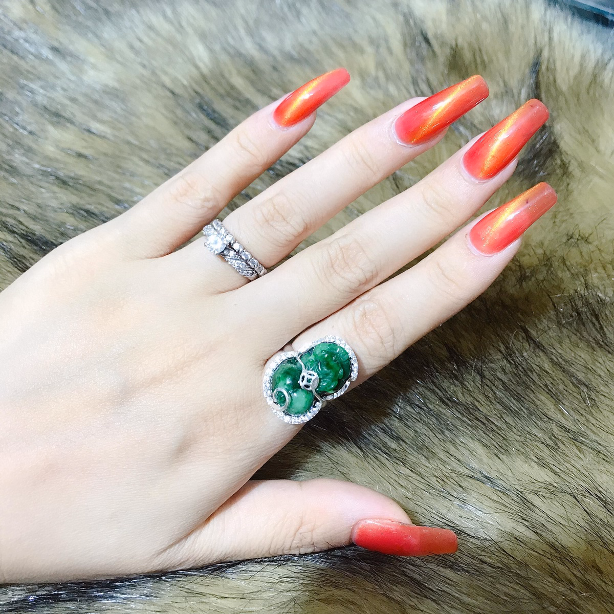 Tên sản phẩm: nhẫn tì hưu ngọc cẩm thạch sơn thủy thiên nhiên bọc bạc ta cao cấp – thắng giang
