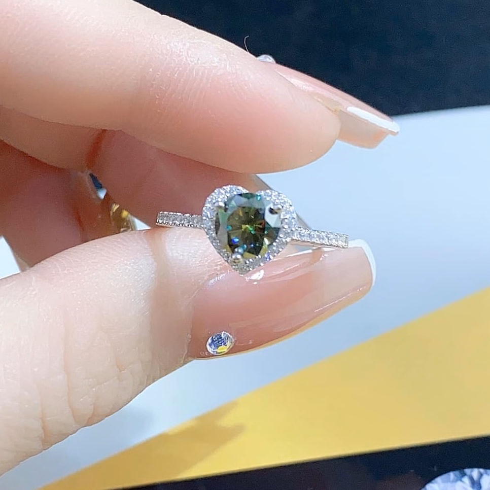 Nhẫn Tim Bạc Ý Xi Bạch Kim Gắn Kim Cương Moissanite Tặng Kèm Kiểm Định Quốc Tế – Thắng Giang