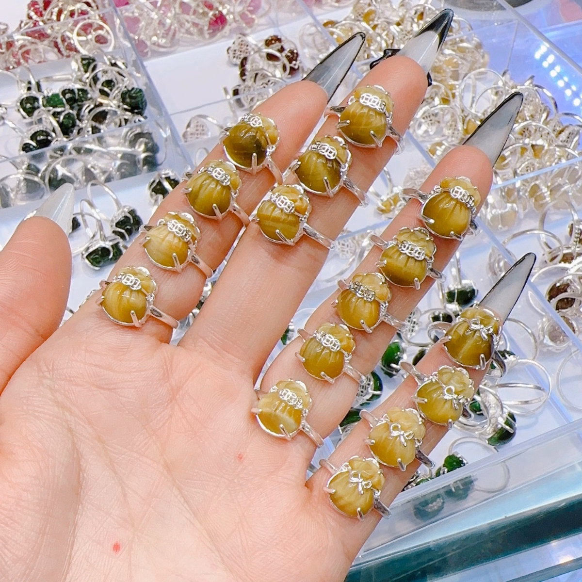 Nhẫn Túi Tiền Đá Thạch Anh Mắt Hổ Vàng – Thắng Giang