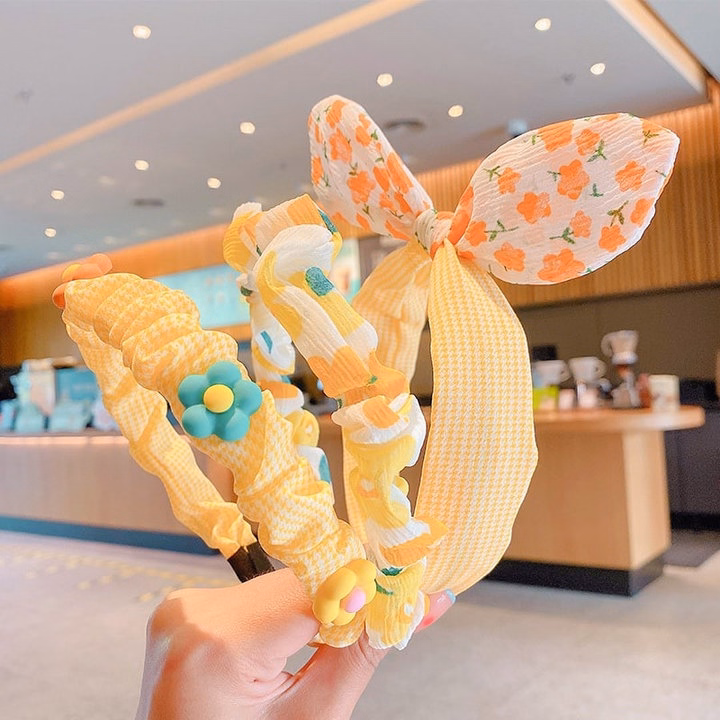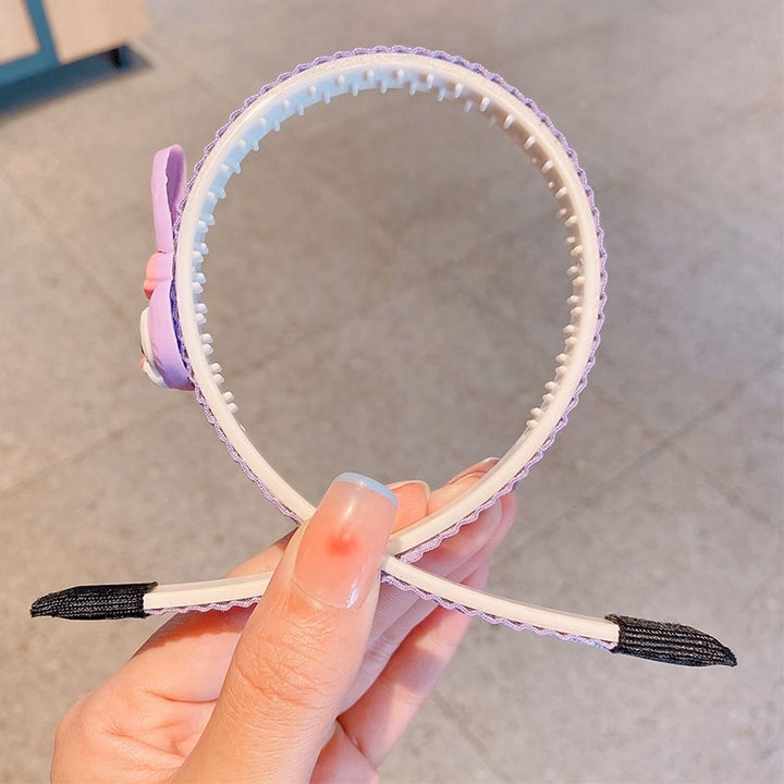 Gọng làm bằng nhựa mềm, nhẹ, được quấn kỹ bằng ruy băng, không làm đau da đầu mỏng manh của bé