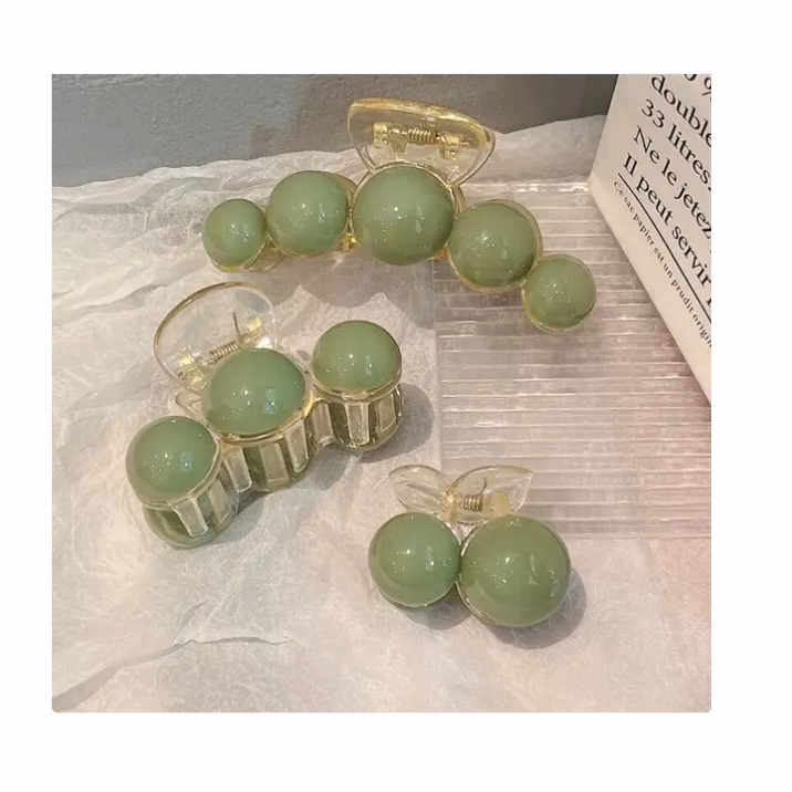 Sét 3 kẹp cặp tóc càng cua hàn quốc đính ngọc trai phong cách tiểu thư màu xanh ngọc