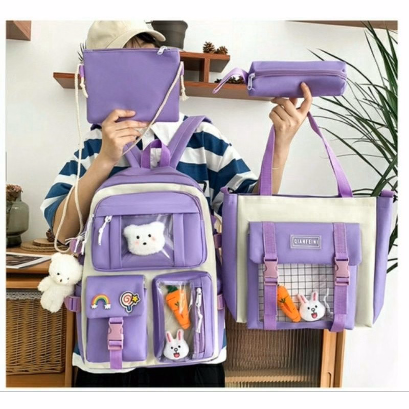 Set 4 Món Balo, Túi Thời Trang Đi Học Giá Rẻ 3 Hộp – Su Clothing