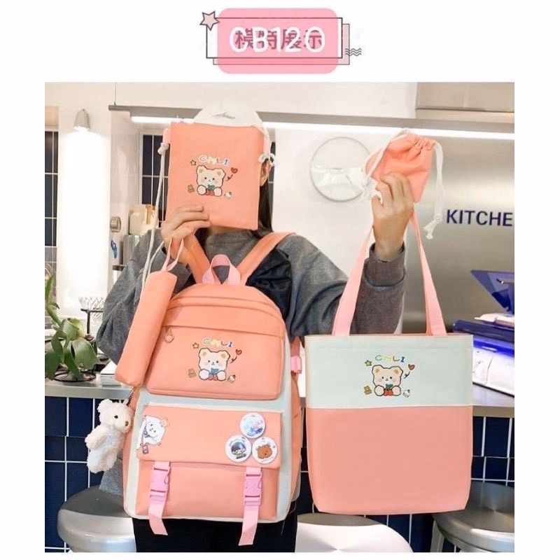 Set 4 Món Balo, Túi Thời Trang Đi Học Giá Rẻ Gấu – Su Clothing