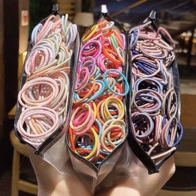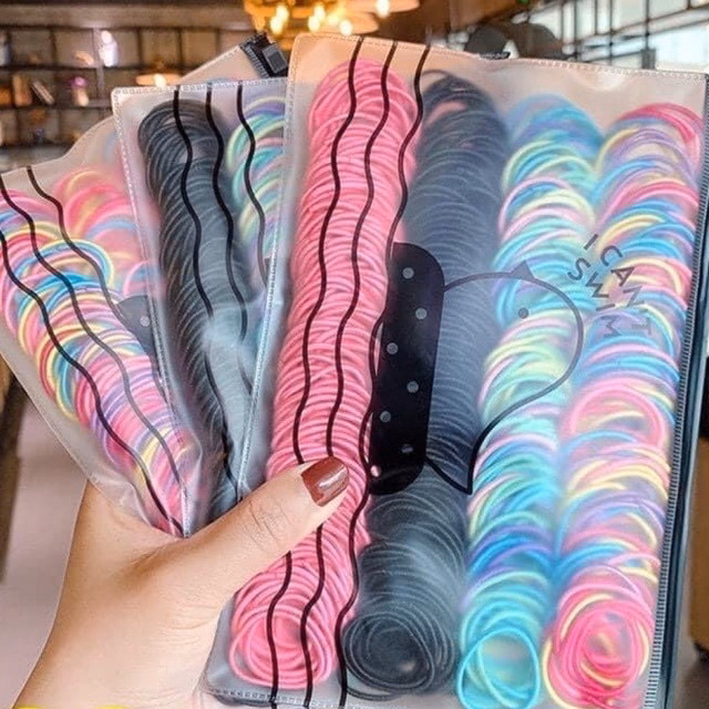 Set 500 Dây Chun Buộc Tóc Nhiều Màu Siêu Xinh Kèm Túi Zip – Su