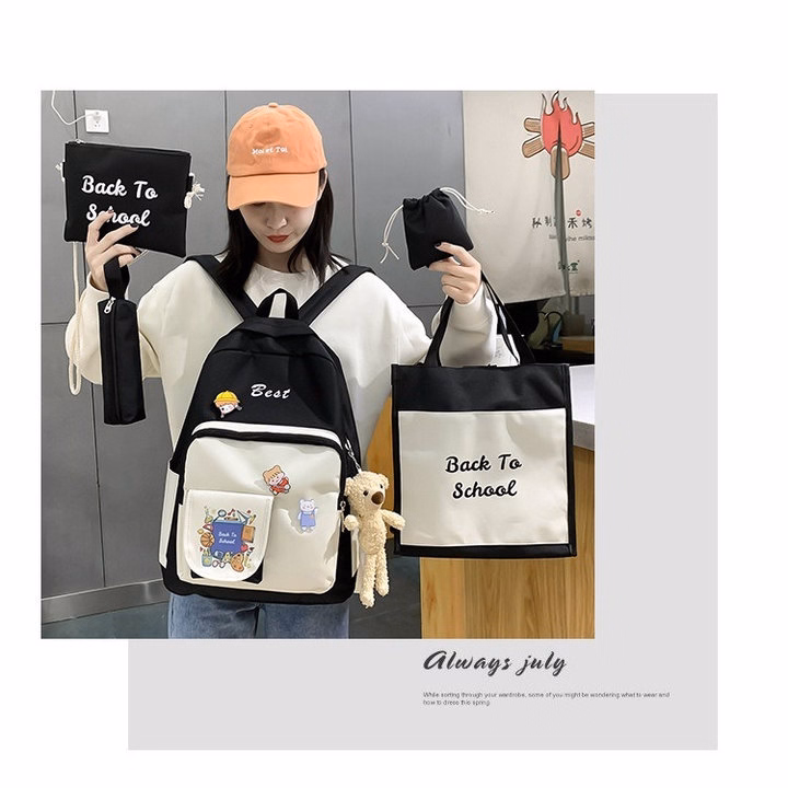 Set 4 món balo túi tote bóp ví học sinh đi học