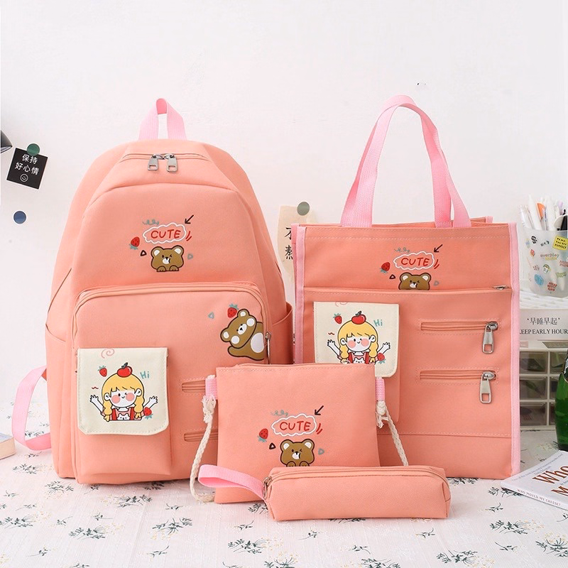 Set Balo 4 Món Cô Gái Kute Phong Cách Hàn Quốc Vừa A4 St234 – Nana House