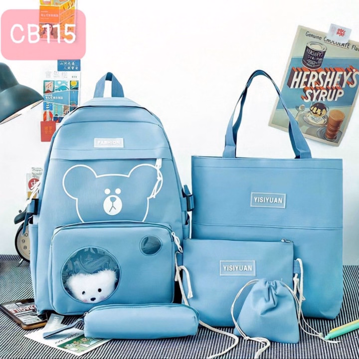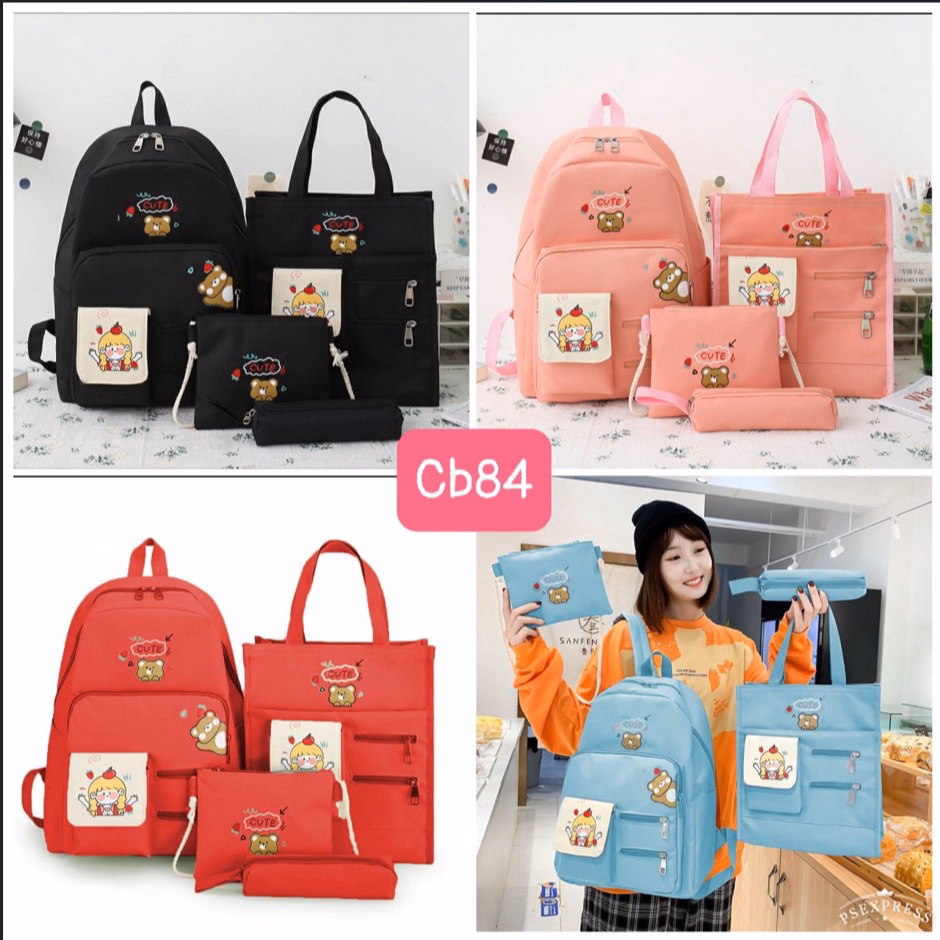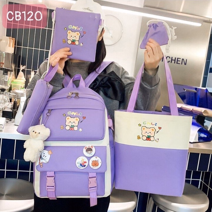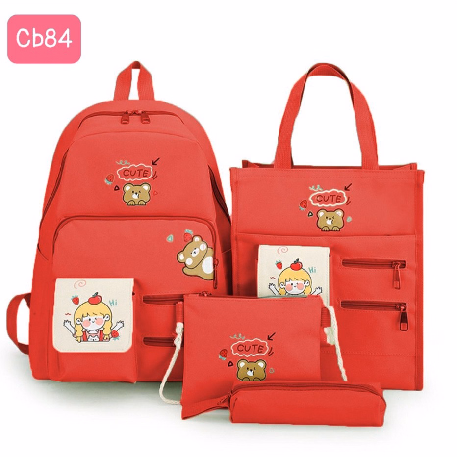Set Balo 4 Món Họa Tiết Gấu Nâu Và Cô Gái Dễ Thương Có Viền – Shop Mẹ Bống