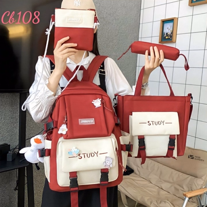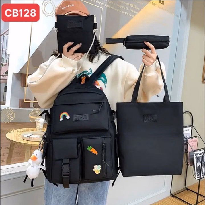 Com Balo 4 món thời trang cao cấp, Cặp đi học kèm túi, ví đa năng phân loại đồ dùng tiện lợi đi làm- đi phượt du lịch.