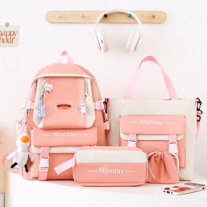 Set 4 món balo túi tote bóp ví học sinh đi học