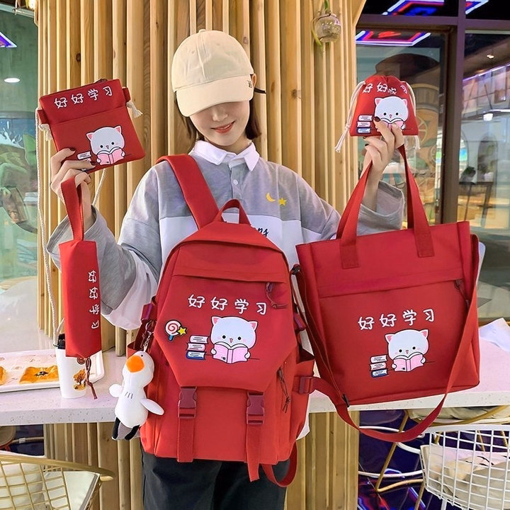 Set 4 món balo túi tote bóp ví học sinh đi học