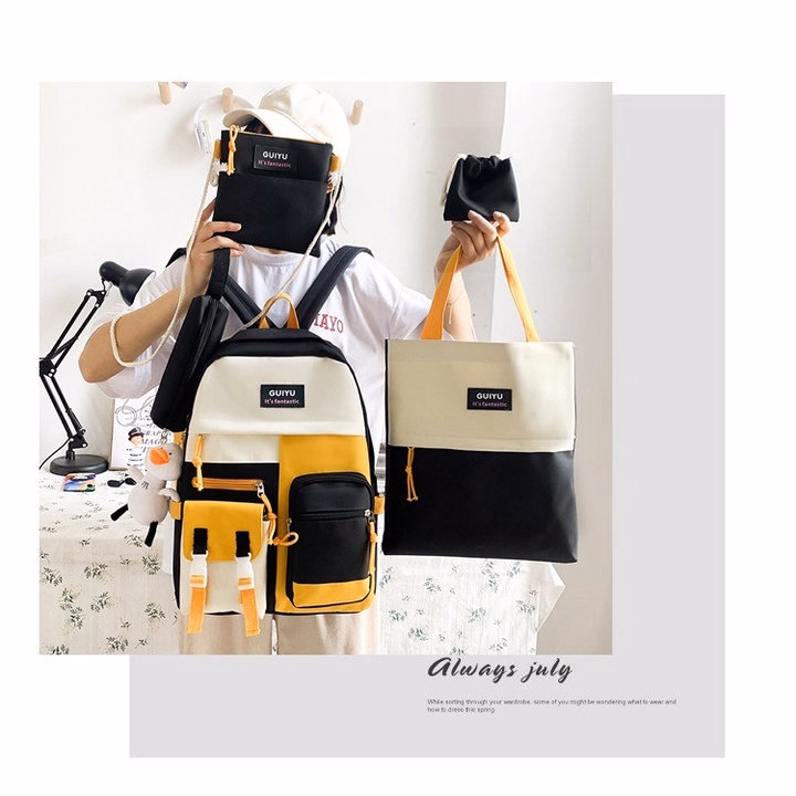 Set Balo 4 Món Phối Màu Fuiyu Phong Cách Ulzzang Vừa A4 Ts9865- Sam Store