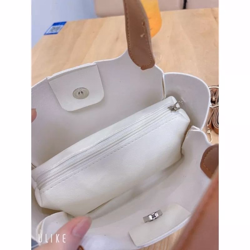 ✅Tên sản phẩm: Set Túi + Ví Da Trơn Dày Mềm Phối Cúc Hàn Quốc Pp67 – Pipi Store
