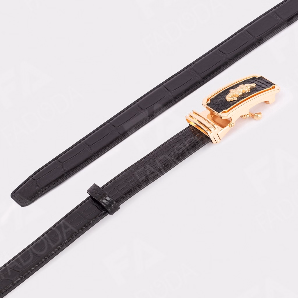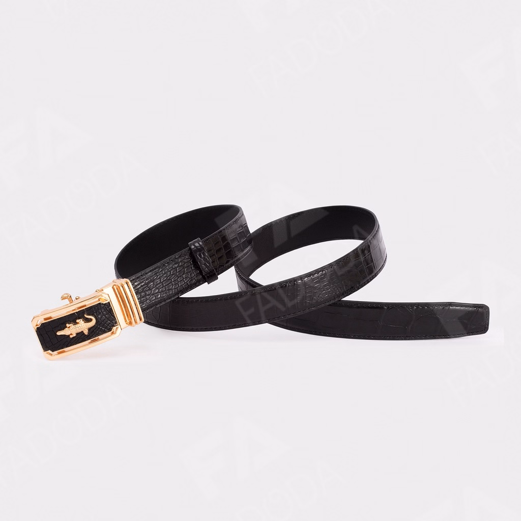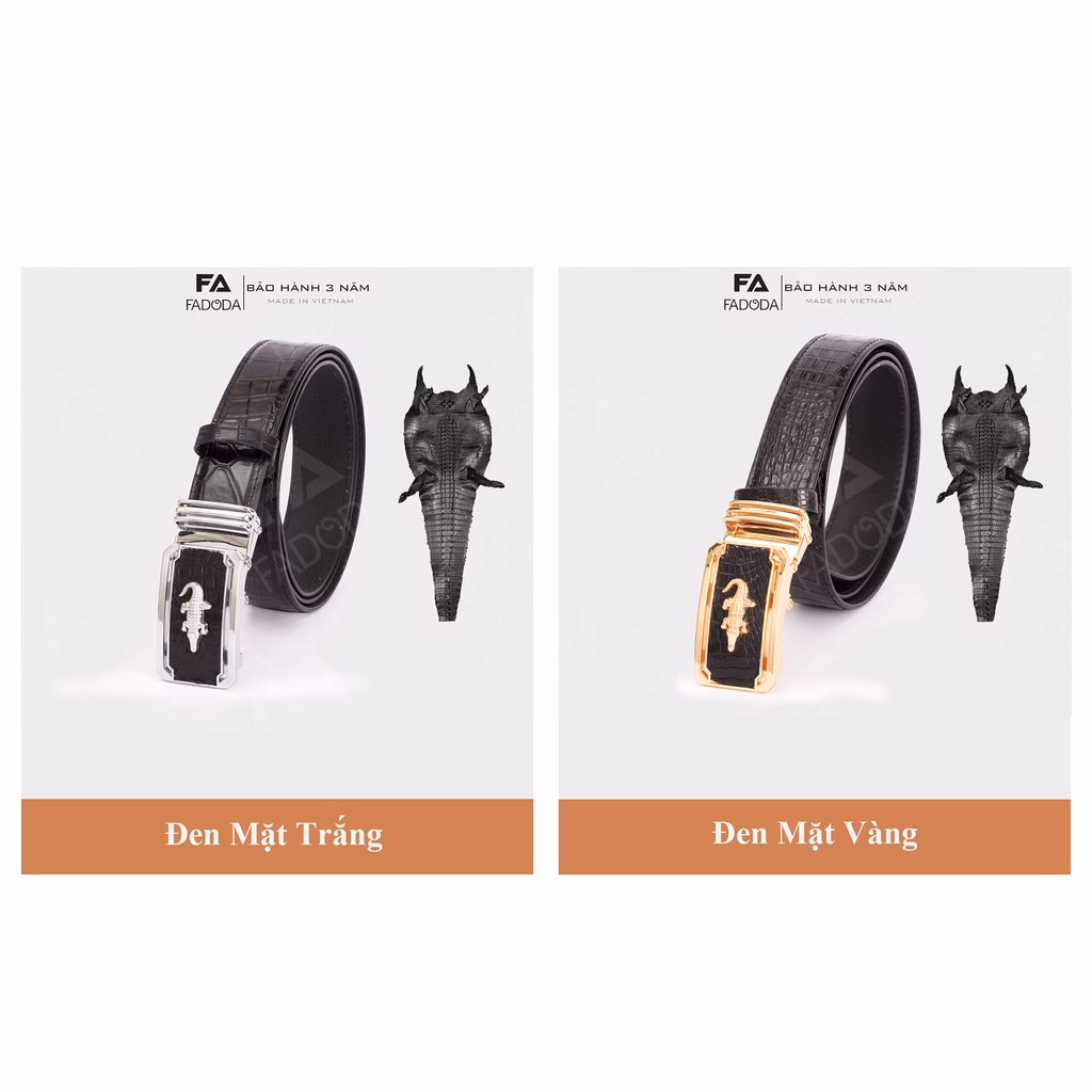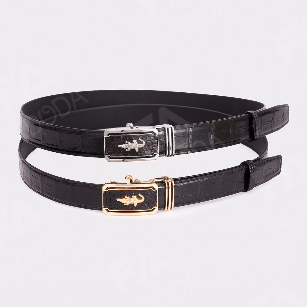 Dây nịt – Thắt lưng da cá sấu Fadoda cao cấp làm từ bụng bản liền nguyên con 3.5cm Fcb01bn. Với 2 phân loại chính là dây đen mặt vàng và dây đen mặt bạc sẽ mang lại cho các quý ông những trải nghiệm đẳng cấp và sang trọng. Đây là dòng thắt lưng dây liền nguyên miếng nghĩa là làm từ 1 miếng da cá sấu duy nhất chính vì vậy mà sản phẩm sẽ được sử dụng bền và đẳng cấp hơn các sản phẩm làm dây ghép.