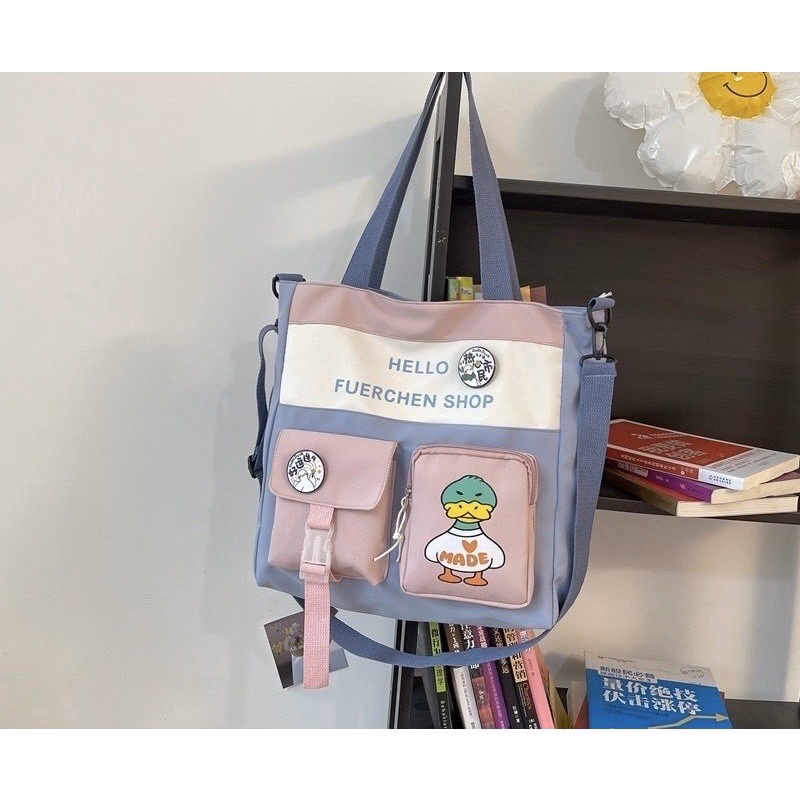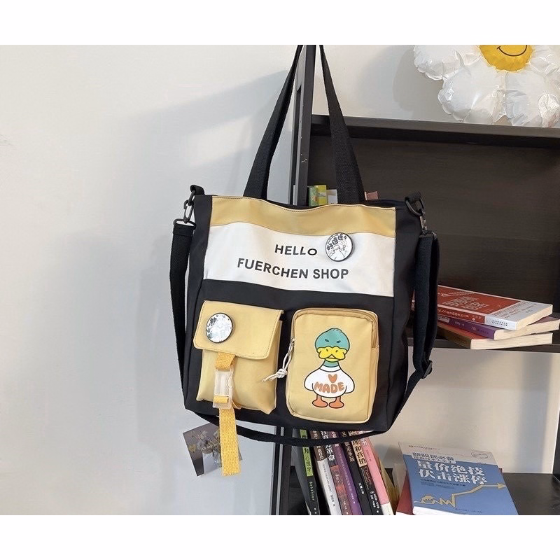 Tote Đi Học Phối Màu Hello Vừa A4 Đeo 2 Kiểu St01 – Be Yourself