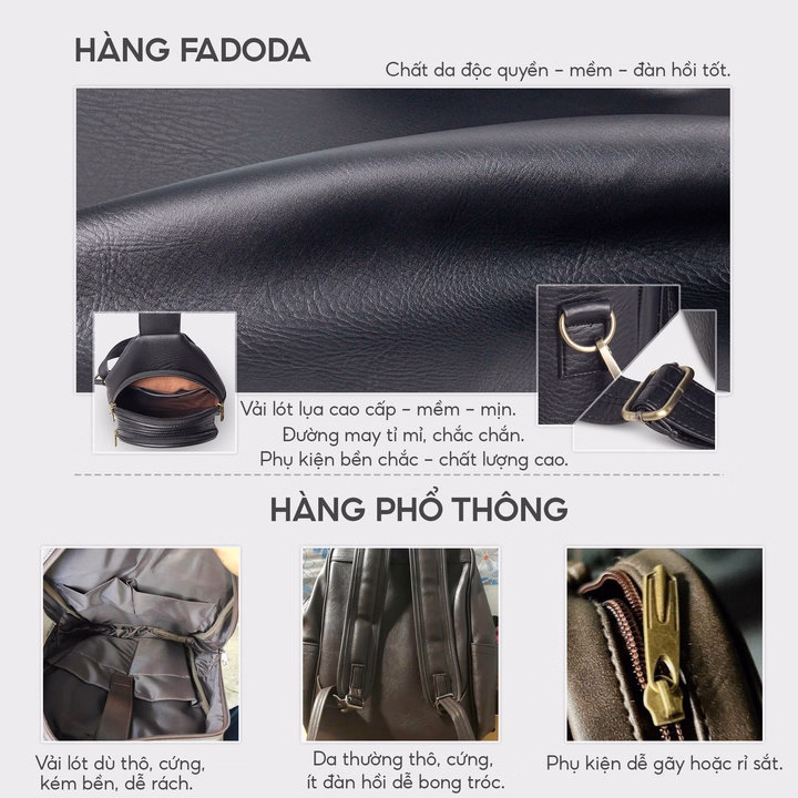 Nếu bạn đang tìm kiếm một chiếc túi vừa tiện dụng, vừa thể hiện phong cách lịch lãm, thì Fadoda Fdc16 chính là lựa chọn hoàn hảo dành cho bạn. Được chế tác từ da tổng hợp cao cấp, kết hợp với lớp lót lụa siêu mịn, sản phẩm không chỉ toát lên vẻ sang trọng mà còn đảm bảo độ bền vượt trội theo thời gian, phù hợp với đi làm, đi chơi,…