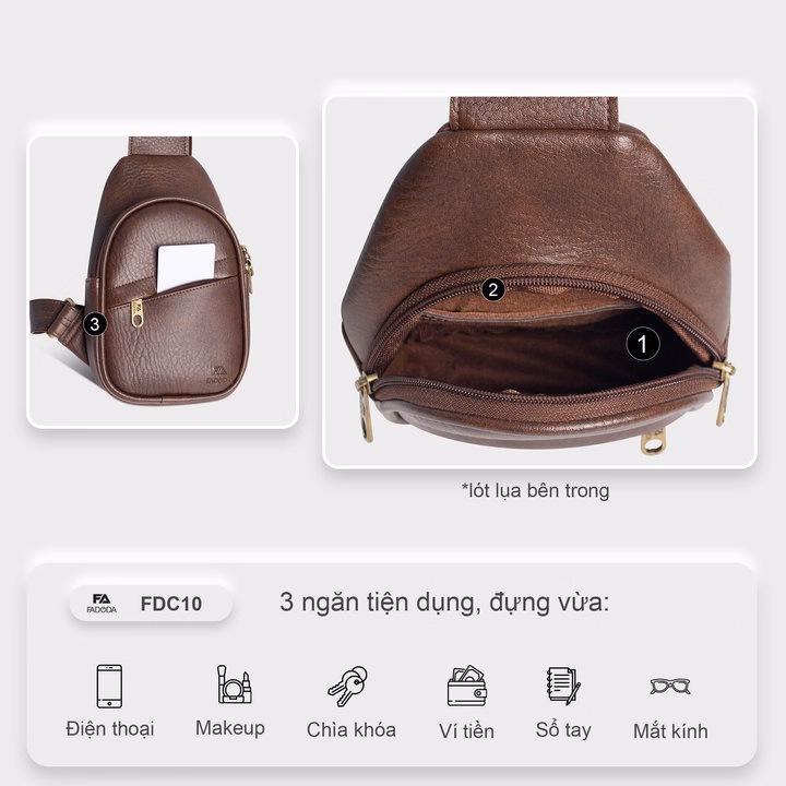 Túi bao tử mini unisex Fadoda Fdc10 mang phong cách năng động, thời trang phù hợp với cả nam lẫn nữ cân mọi outfit. Các ngăn rộng rãi, đựng đồ thoải mái, ngăn ngoài còn có thêm ngăn khóa kéo rất kín đáo và chắc chắn