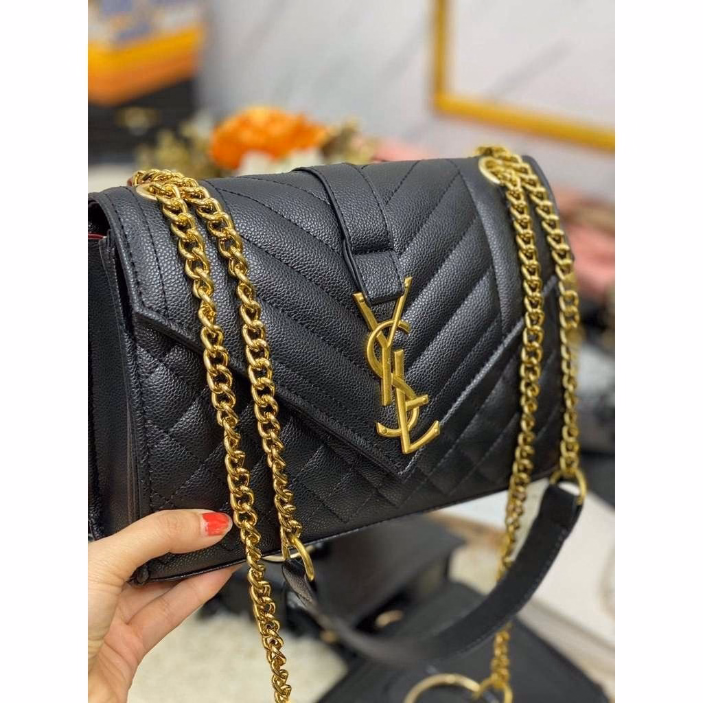 Túi xách bì thư tag đen dây xích đen kết hợp với dây da ,có thể đeo chéo, đeo vai đeo cắp nách, với thiết kế da vân trám ,Chất da mềm mịn, bền với thời gian.Kiểu dáng trẻ trung, hợp thời trang.Thích hợp mang đi chơi, đi làm.
