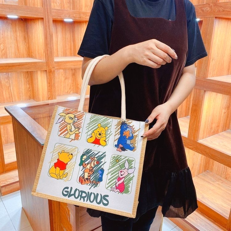 Túi cói với nhiều họa tiết họa tiết hoạt hình động vật và cô gái đáng yêu với mang phong cách Hàn Quốc trẻ trung, độc lạ được các bạn nữ yêu thích.