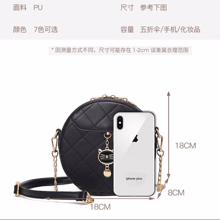 ✅Tên sản phẩm: Túi Cốp Tròn Khóa Mèo Đáng Yêu, Phối Xích Thời Trang Pp511 – Pipi Store